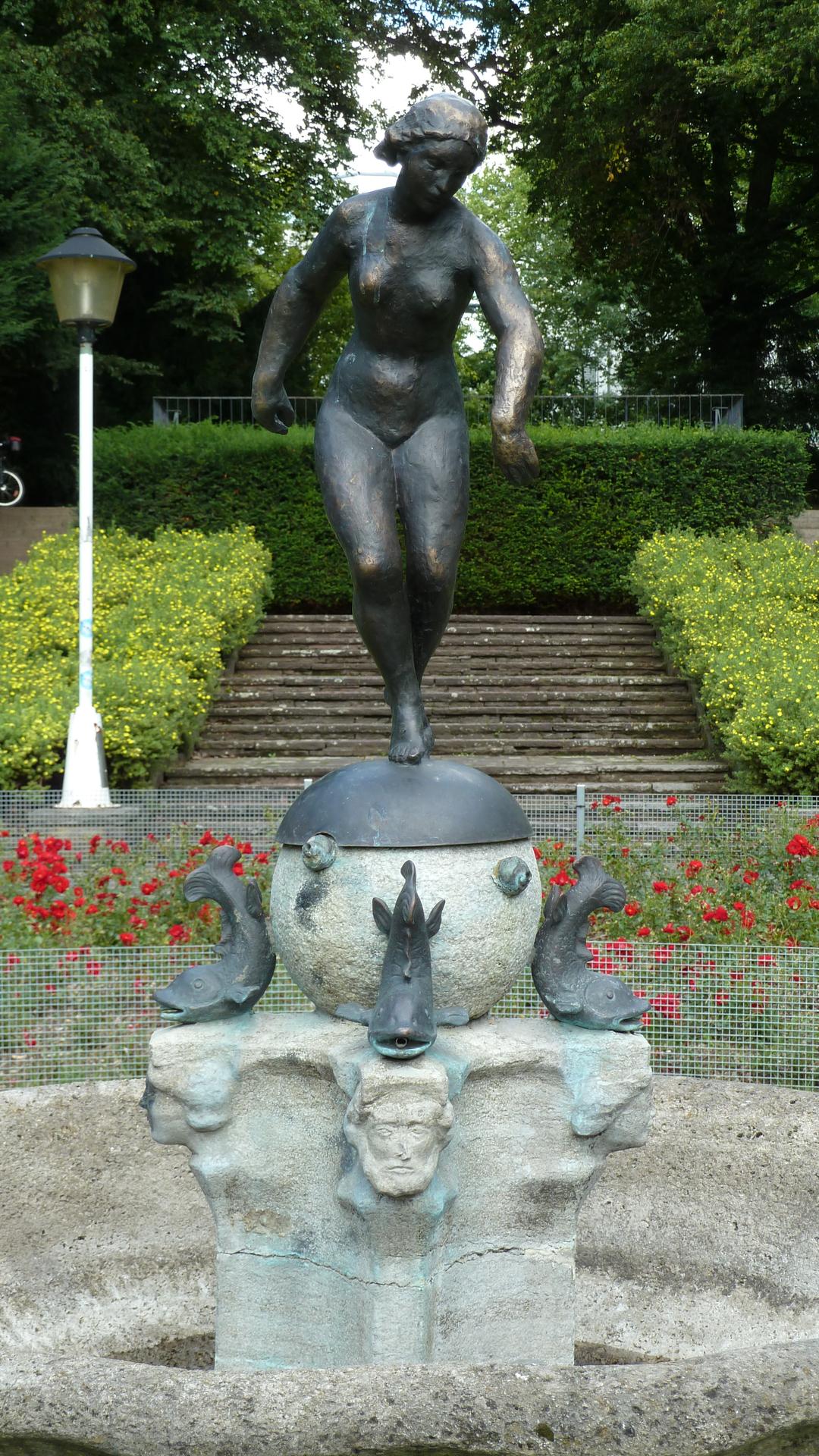 Jungmädchen-Brunnen im Rosengarten des Stadtparks (1926)