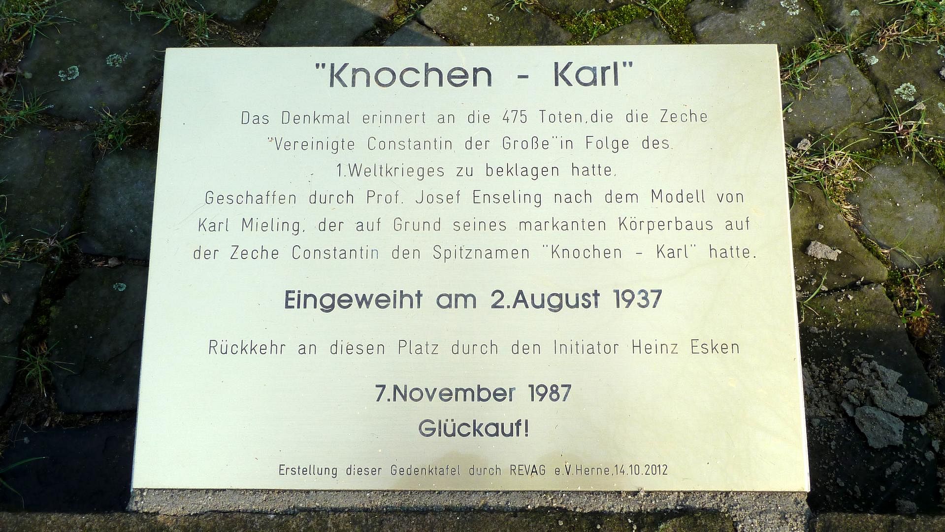 „Knochen-Karl“ erinnert an die 475 Toten, die die Zeche „Vereinigte Constantin der Große“ in Folge des Ersten Weltkriegs zu beklagen hatte.