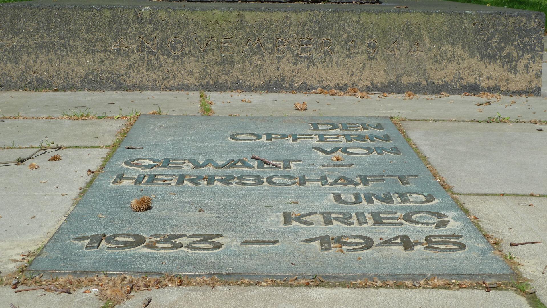 Der Sockel trägt die Inschrift „4. November 1944“ und erinnert damit an die furchtbarste Bombennacht in Bochum während des Zeiten Weltkriegs. Eine Tafel vor der Figur widmet das Mahnmal „Den Opfern von Gewaltherrschaft und Krieg 1933-1945“