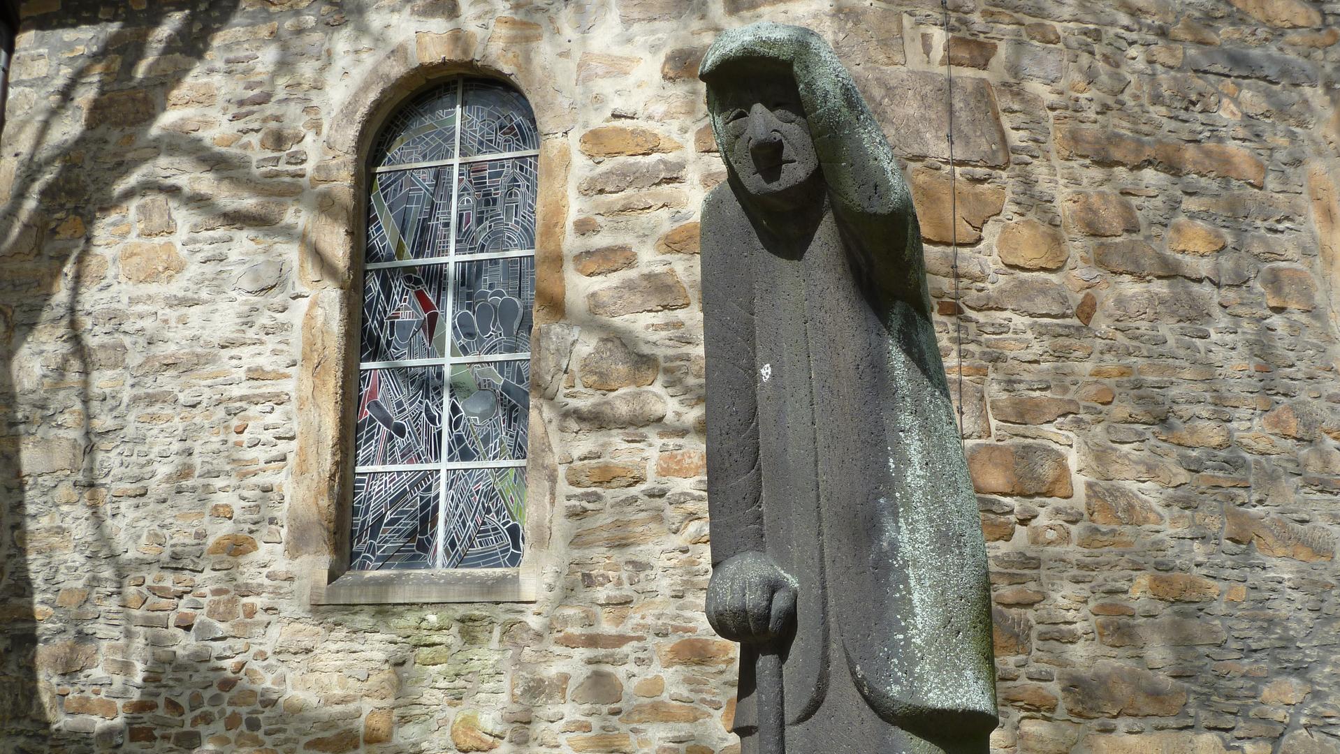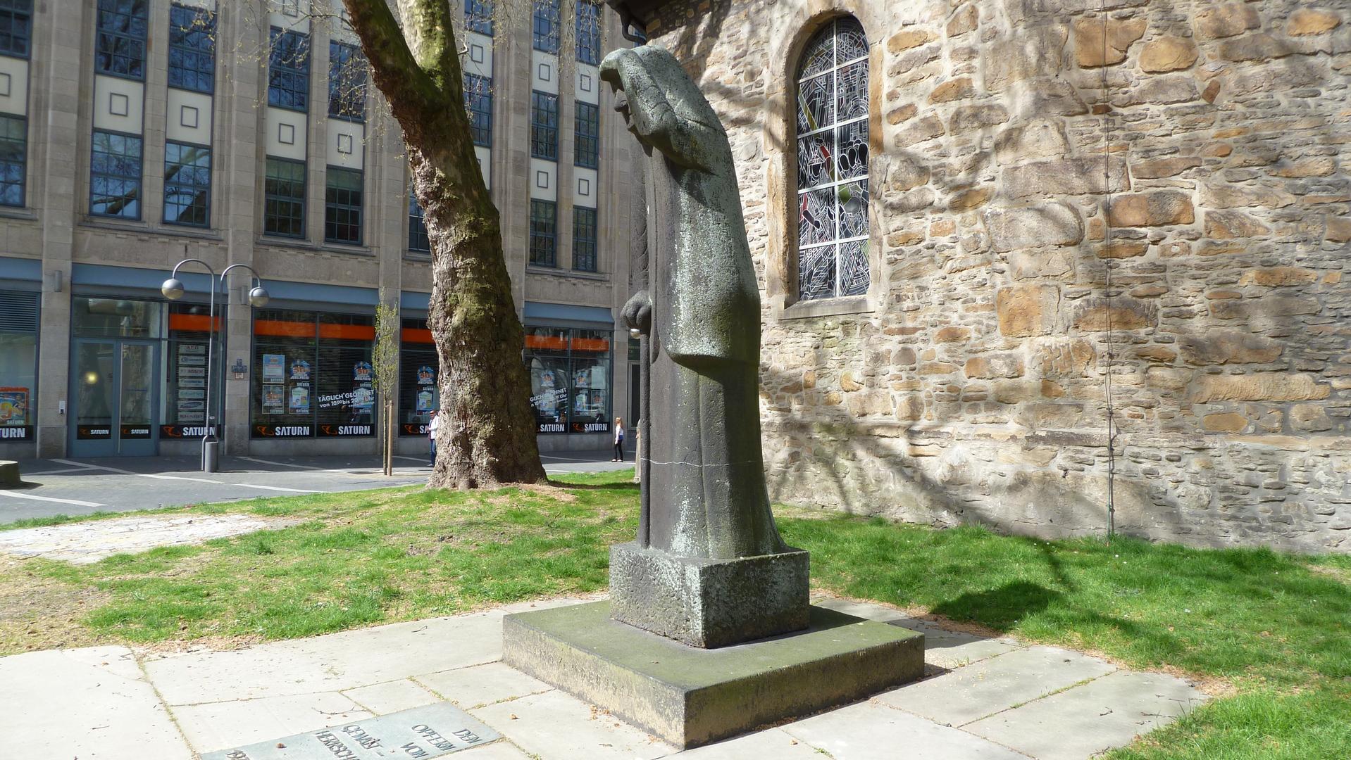 Die „Trauernde Alte“ an der Pauluskirche im Stadtzentrum ist - zusammen mit dem von Ignatius Geitel gestalteten Mosaik der klagenden Mutter auf dem Hauptfriedhof - das wichtigste Denkmal zur Erinnerung an die Schrecken des Zweiten Weltkriegs in Bochum.