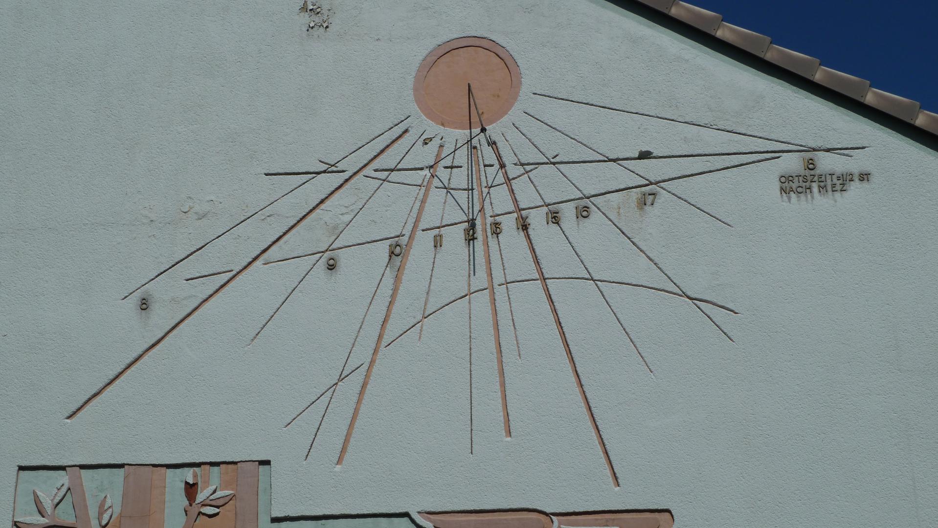 Das Sgraffito ist im Juni 2012 der energetischen Sanierung der Waldschule zum Opfer gefallen. Jahrzehntelange Vernachlässigung erledigte die Vorarbeiten.