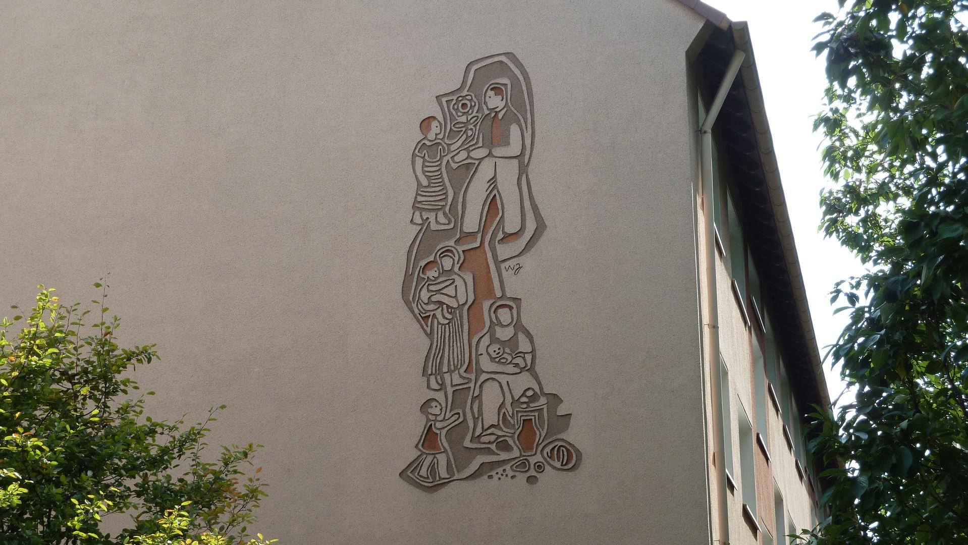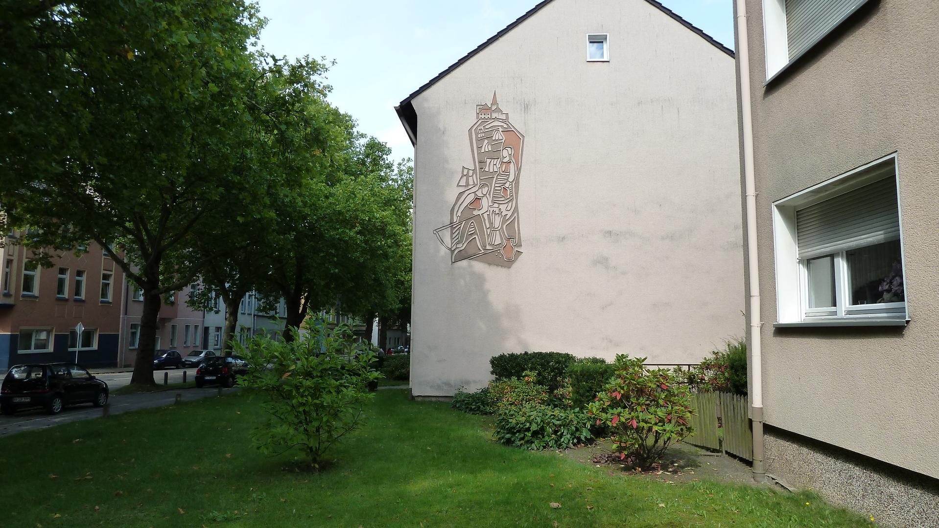 Heinrich Rudolph gehörte nach dem Zweiten Weltkrieg zu den bekanntesten Wattenscheider Künstlern. Für die neue Siedlung der Gemeinnützigen Bau- und Siedlungsgenossenschaft Wattenscheid gestaltete er die Giebelseiten der Häuser an der Hüller Straße mit Sgraffiti.