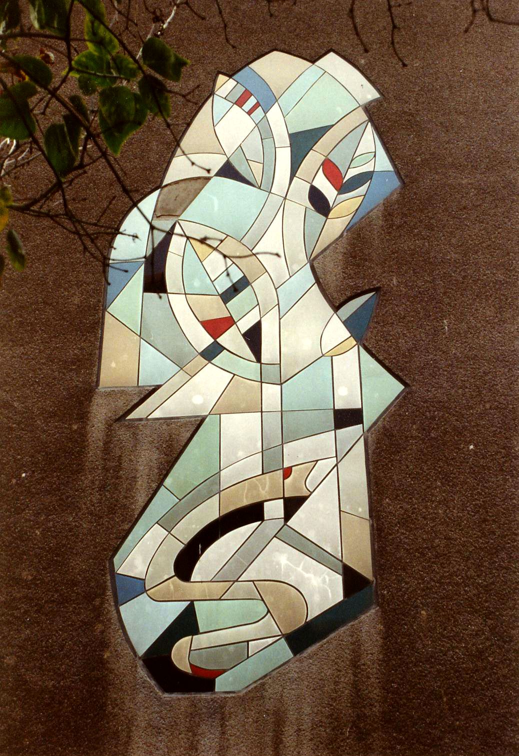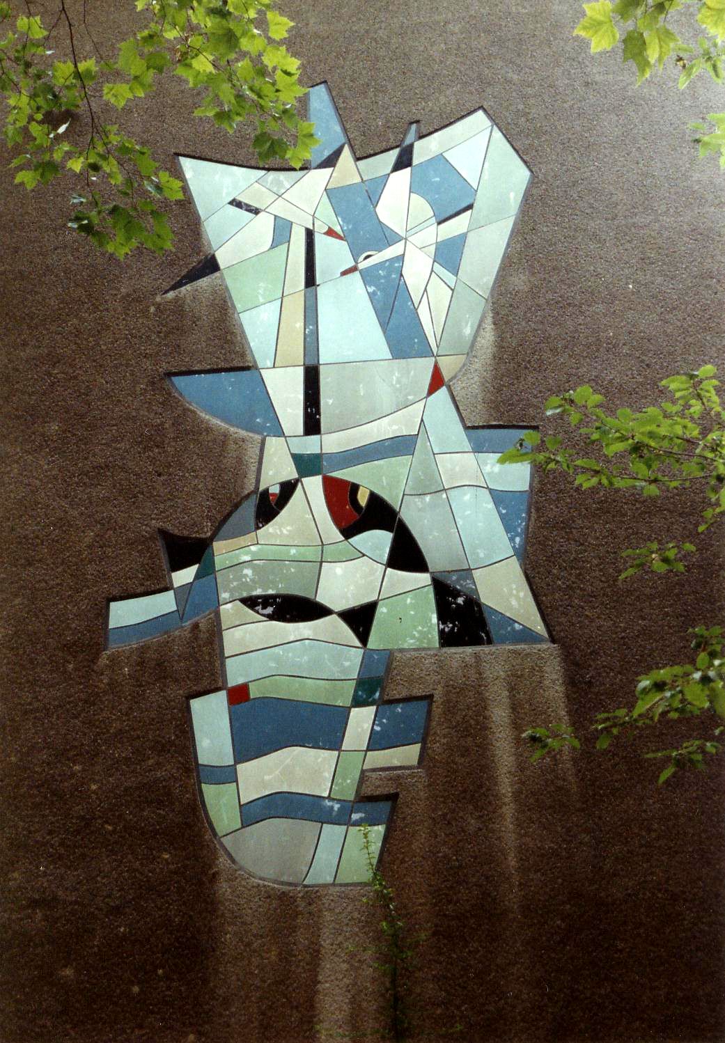 Die Gestaltung der Mosaike erinnert an zeitgenössische Glasmalerei, die in linearer Abstraktion gegenständliche Formen und Umrisse in Linien, Farben und Flächen auflöste.
