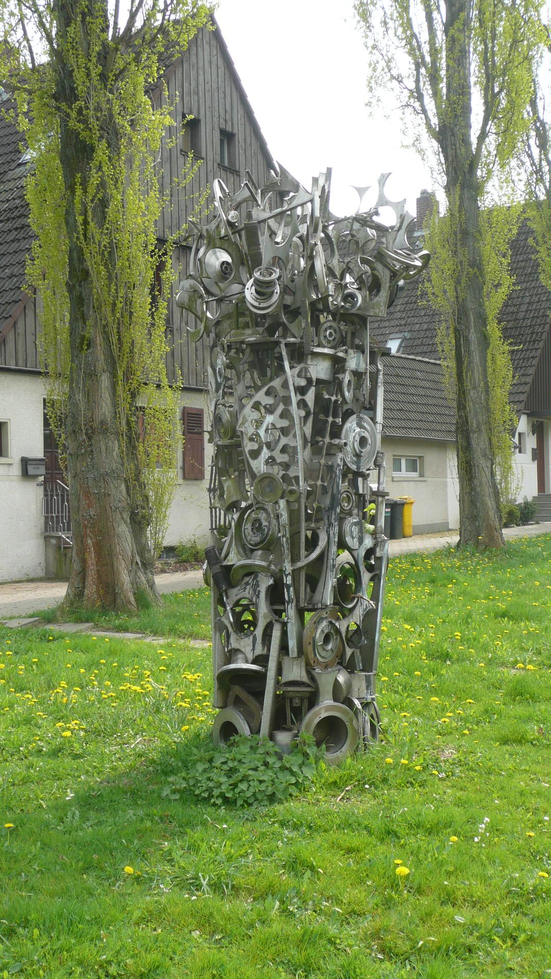 Aus Fundstücken realisierte Kozaric auch seine Skulptur für das Symposium: Edelstahlreste sind zu einem geschweißten, stelenartigen Lebensbaum geworden. Der „Lebensbaum“ wirkt ein Stück aus einer anderen Welt, mitten in der Zechenkolonie.