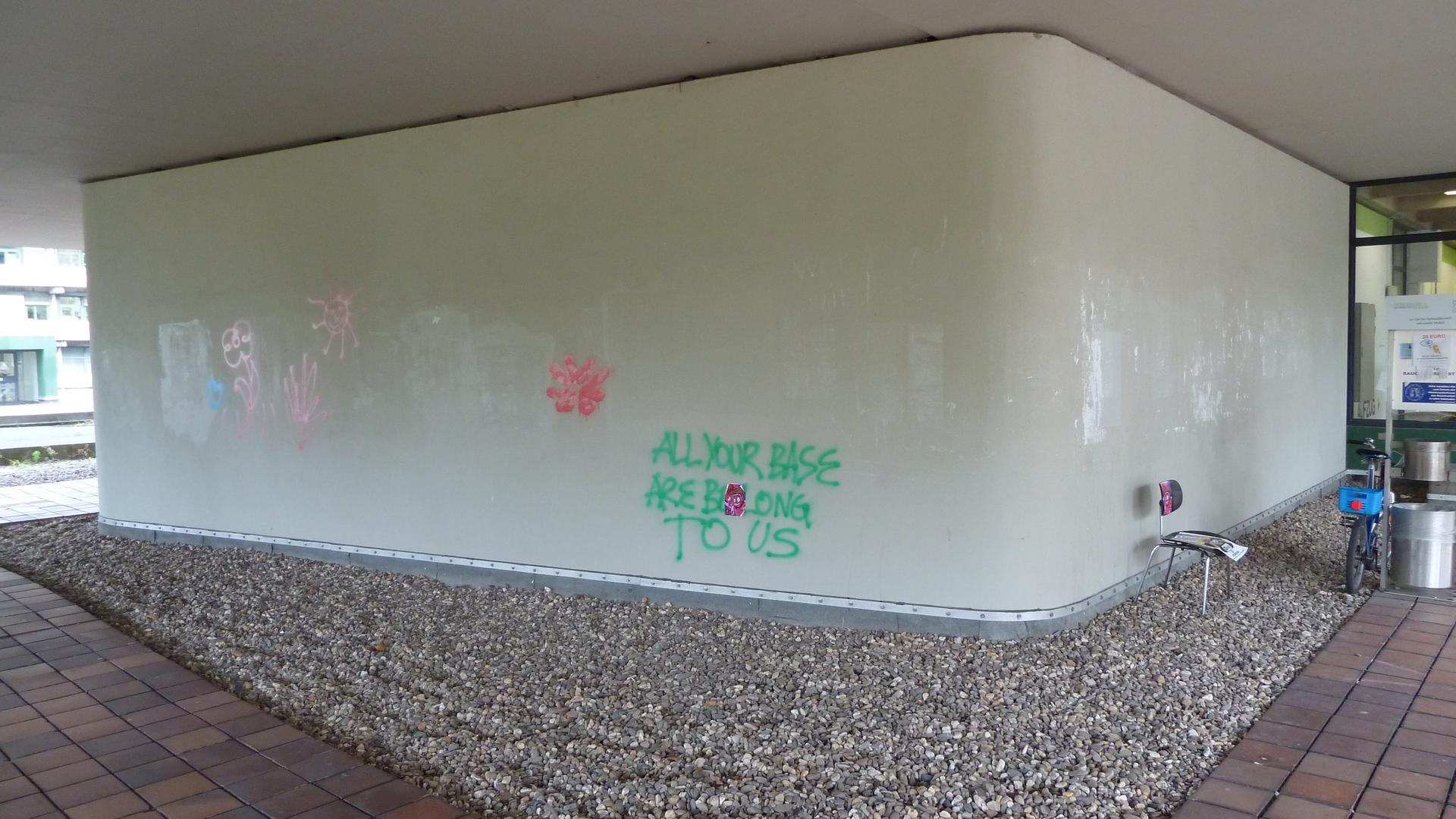 Die freistehenden Versorgungskerne der N-Gebäude wurden in den 1970er Jahren mit Kunstinstallationen international bekannter Künstler verkleidet.