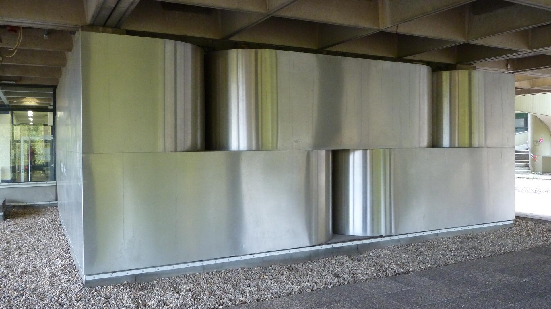 Erwin Heerich entwarf für die Versorgungskerne NA-Nord, ND-Nord und NC-Süd drei Varianten einer „metallischen Haut“, deren ebene Flächen durch eingeformte Viertelzylinder unterbrochen werden. Die Ausführung sollte in Edelstahlblechen erfolgen, da deren sichtbare Fugenteilung die Gesamtflächen gliedert und rhythmisiert. Im Vorübergehen ergibt sich ein Spiel von Lichtbrechungen und -reflexionen.