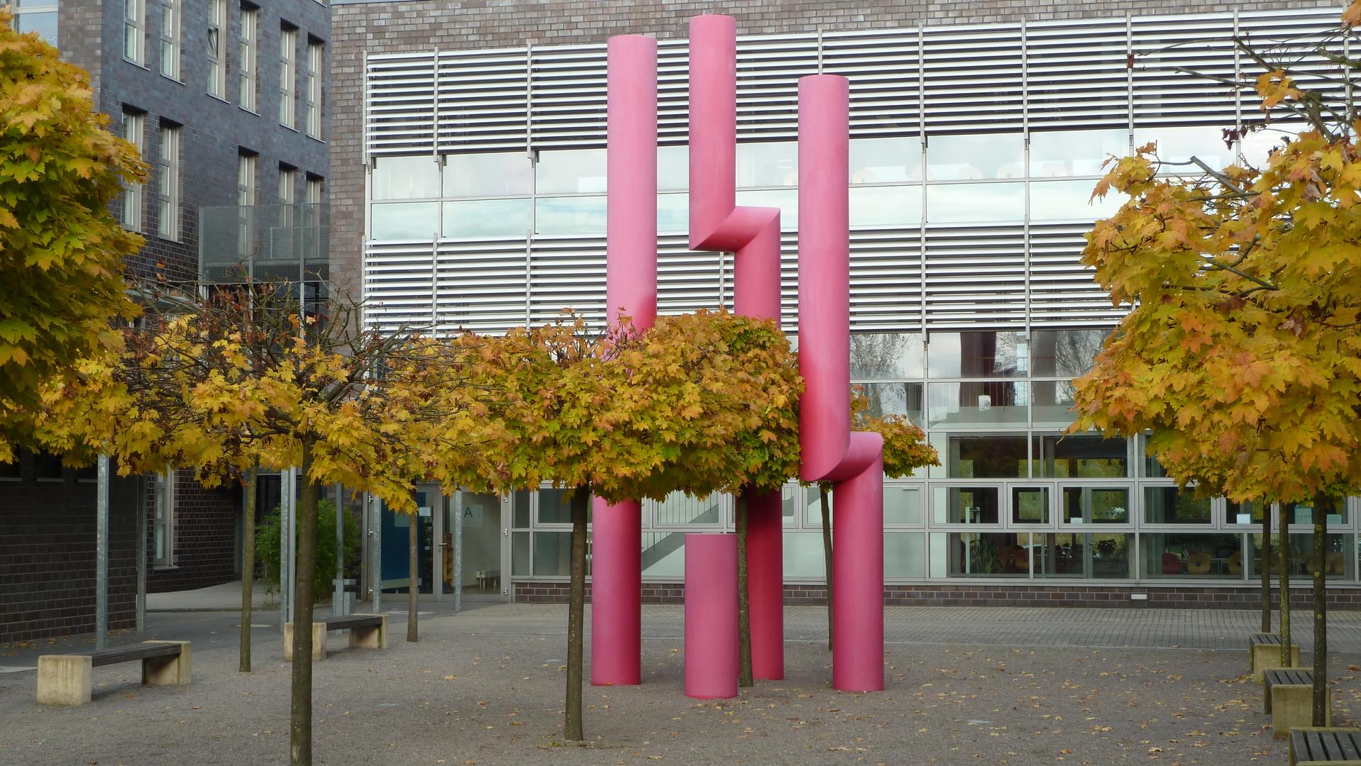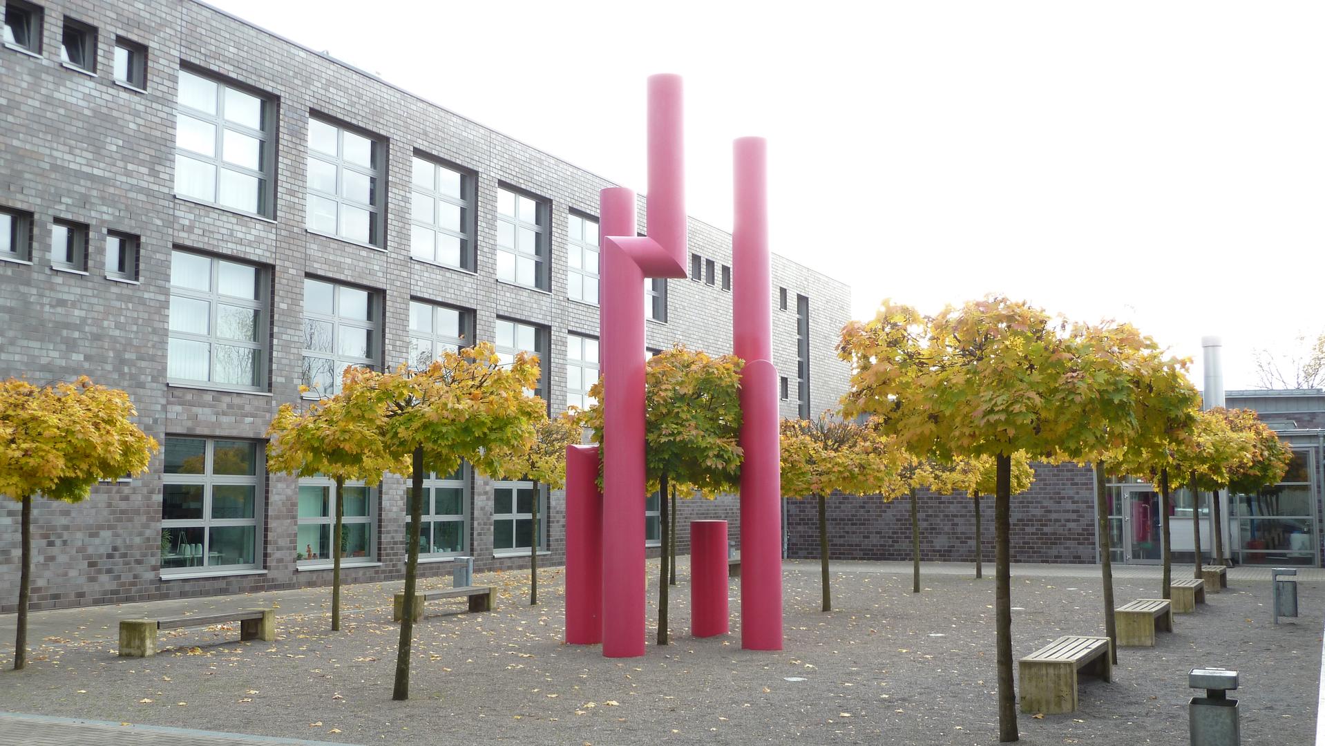 Für den Pausenhof der Akademie des Handwerks in Bochum gestaltete Friedrich Gräsel die Plastik „Säulen für eine Akademie“.