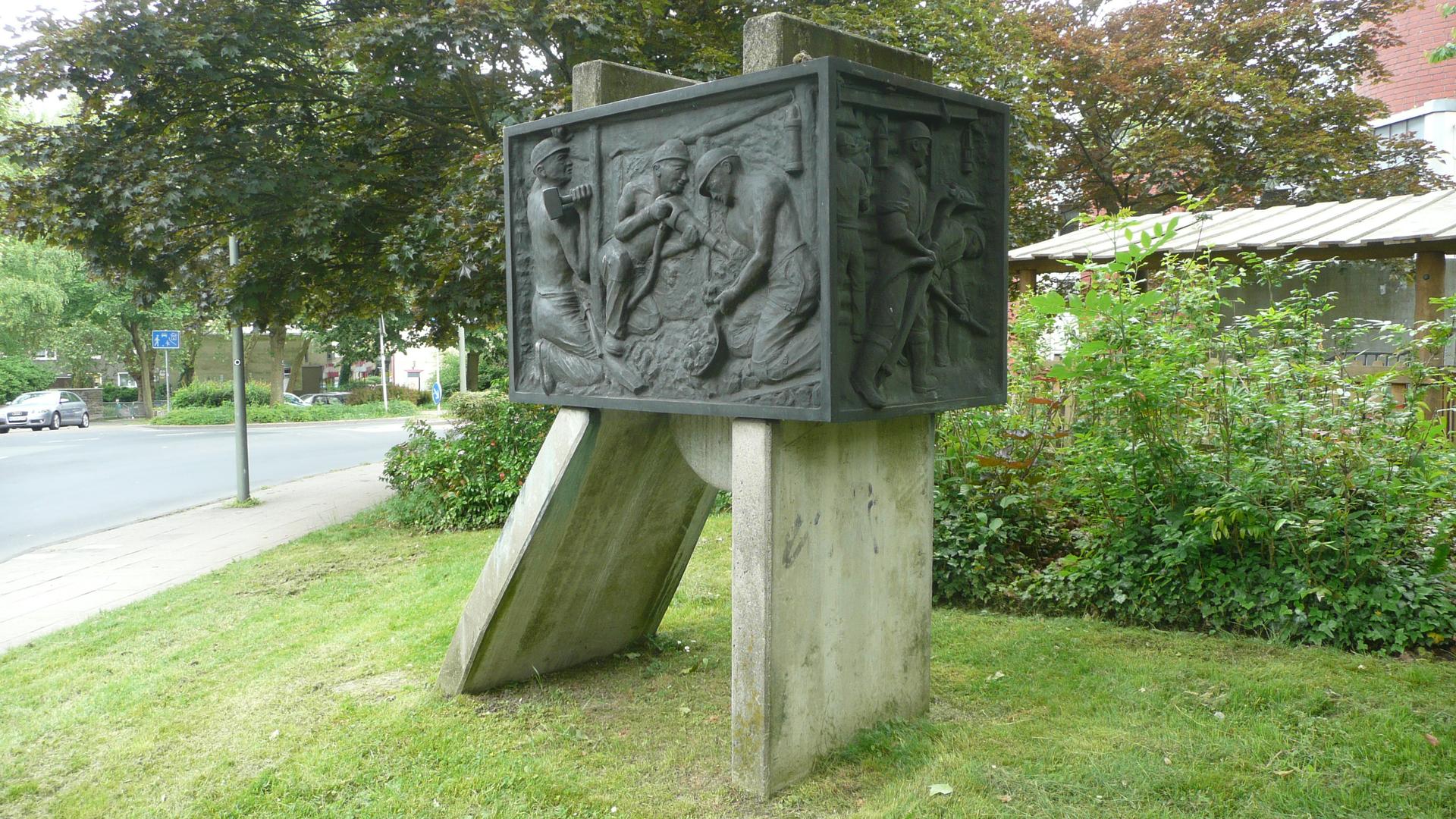 Auf einer kleinen Rasenfläche vor dem Erich-Brühmann-Haus der evangelischen Kirche steht gegenüber dem Amtsgebäude das Bergbaudenkmal des Werner Künstlers Paul Epp. Das 2,4 Meter hohe Erinnerungsmal ähnelt in seinem Aufbau einem Fördergerüst. Stützen und Seilscheibe sind aus Beton gegossen und von je zwei rechteckigen und zwei annähernd quadratischen Bronzeplatten eingefasst. Die Motive zeigen „bergmännische Tätigkeiten im Grubenbetrieb, wie sie auf den Langendreer- und Werner Zechen während ihres über 100jährigen Bestehens in überwiegender Weise üblich waren“ (Paul Epp).