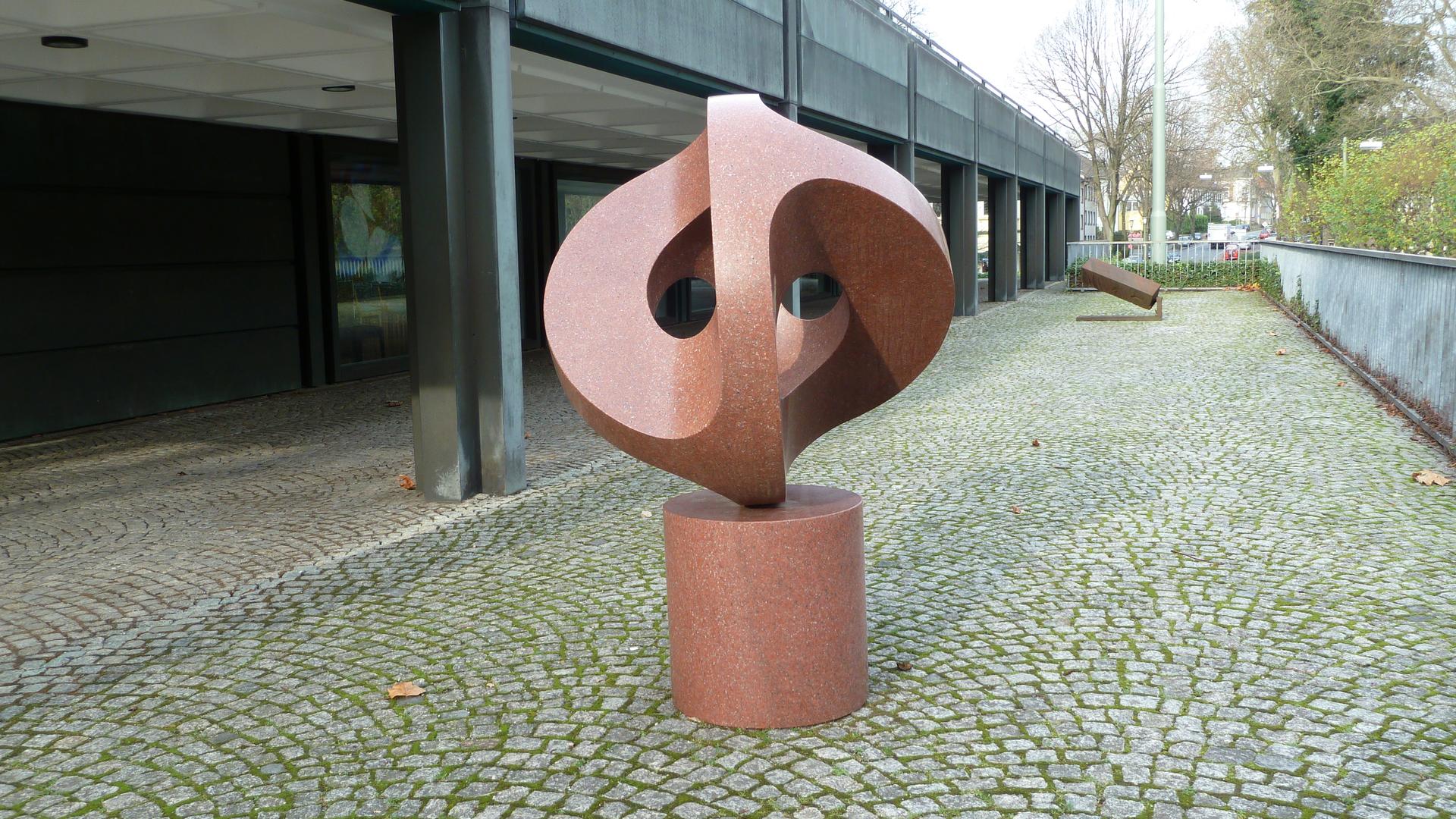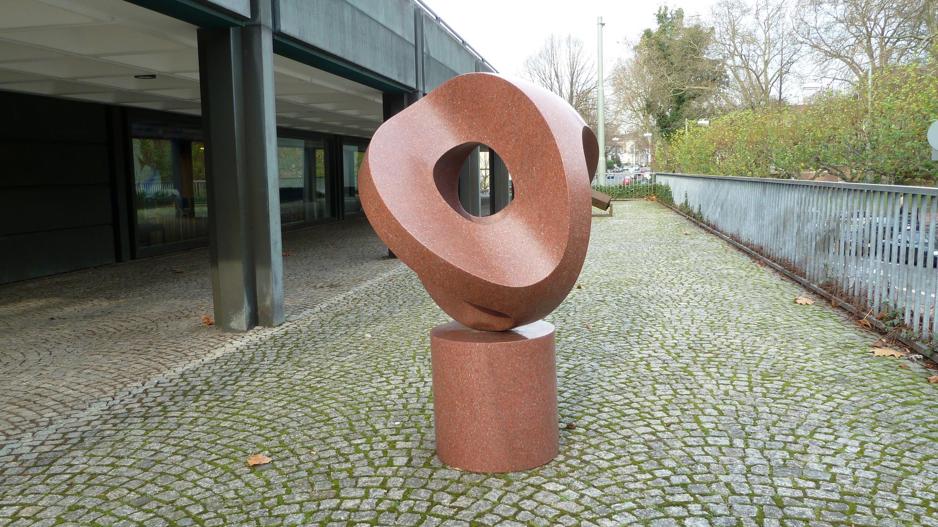 Der Künstler schuf die Konstruktion aus Kreis und Kugel in mehreren Versionen: War die erste Plastik 1937 noch aus Metall, ist die Bochumer Version (1968) aus rotem Granit.