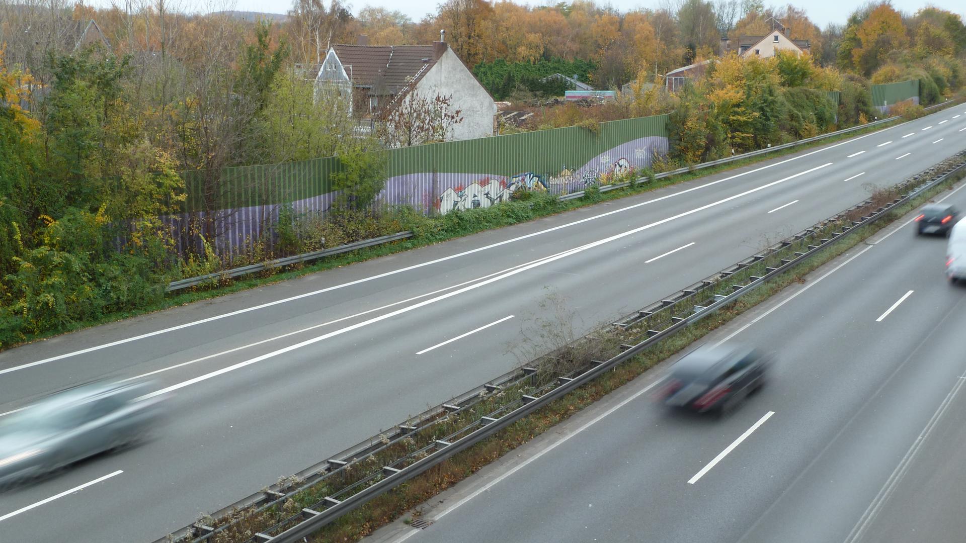 Heute ist von der ursprünglichen Gestaltung fast nichts mehr zu sehen. Die Schallschutzwand ist weitgehend hinter dem Autobahnbegleitgrün verschwunden und mit Graffiti geschmückt. Aber die Gestaltung dieser Schallschutzwand ist das einzige (bekannte) Kunstwerk von Kuno Gonschior im öffentlichen Raum Bochums und Kuno Gonschior sollte in dieser Sammlung unbedingt vertreten sein.
