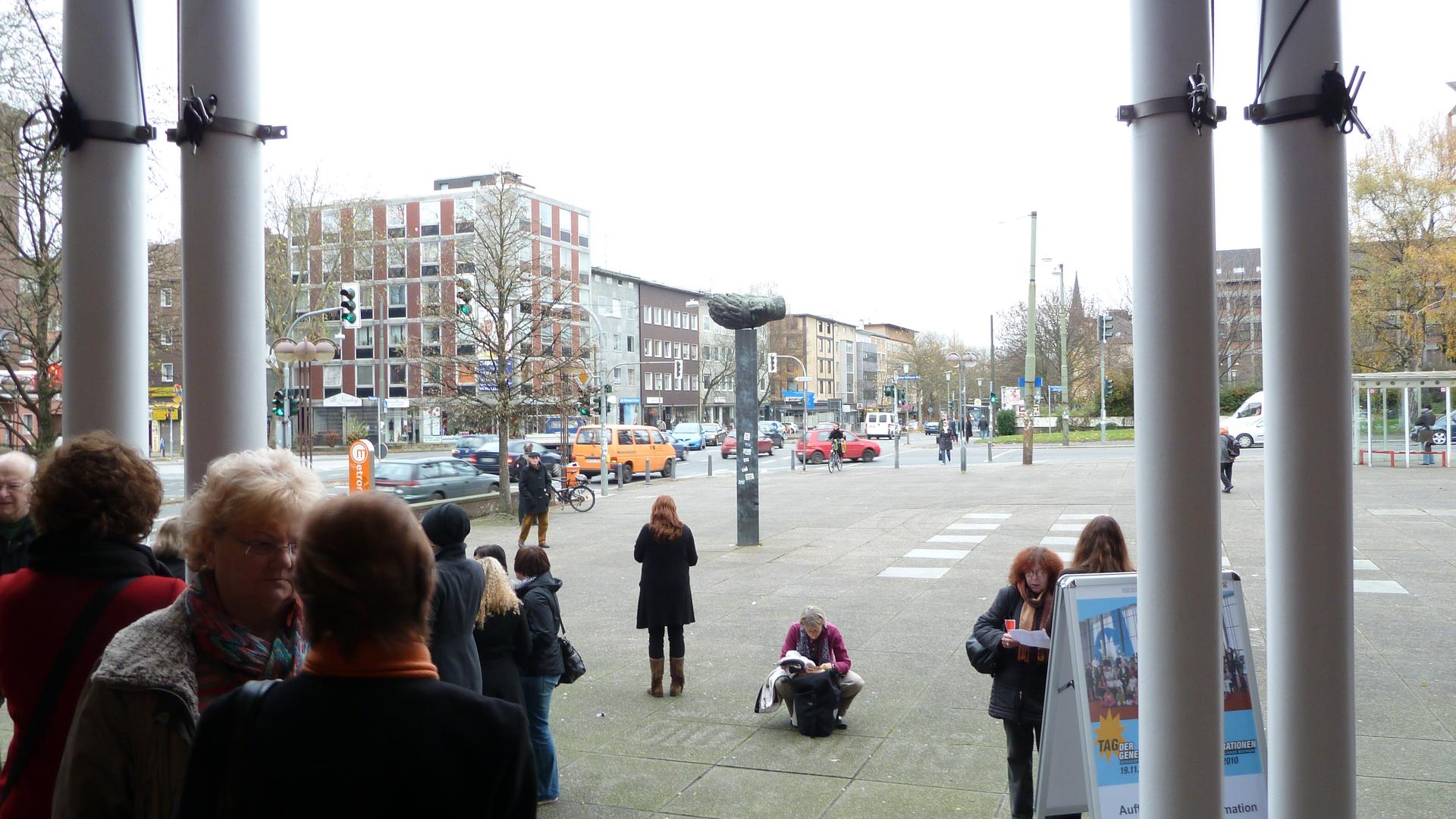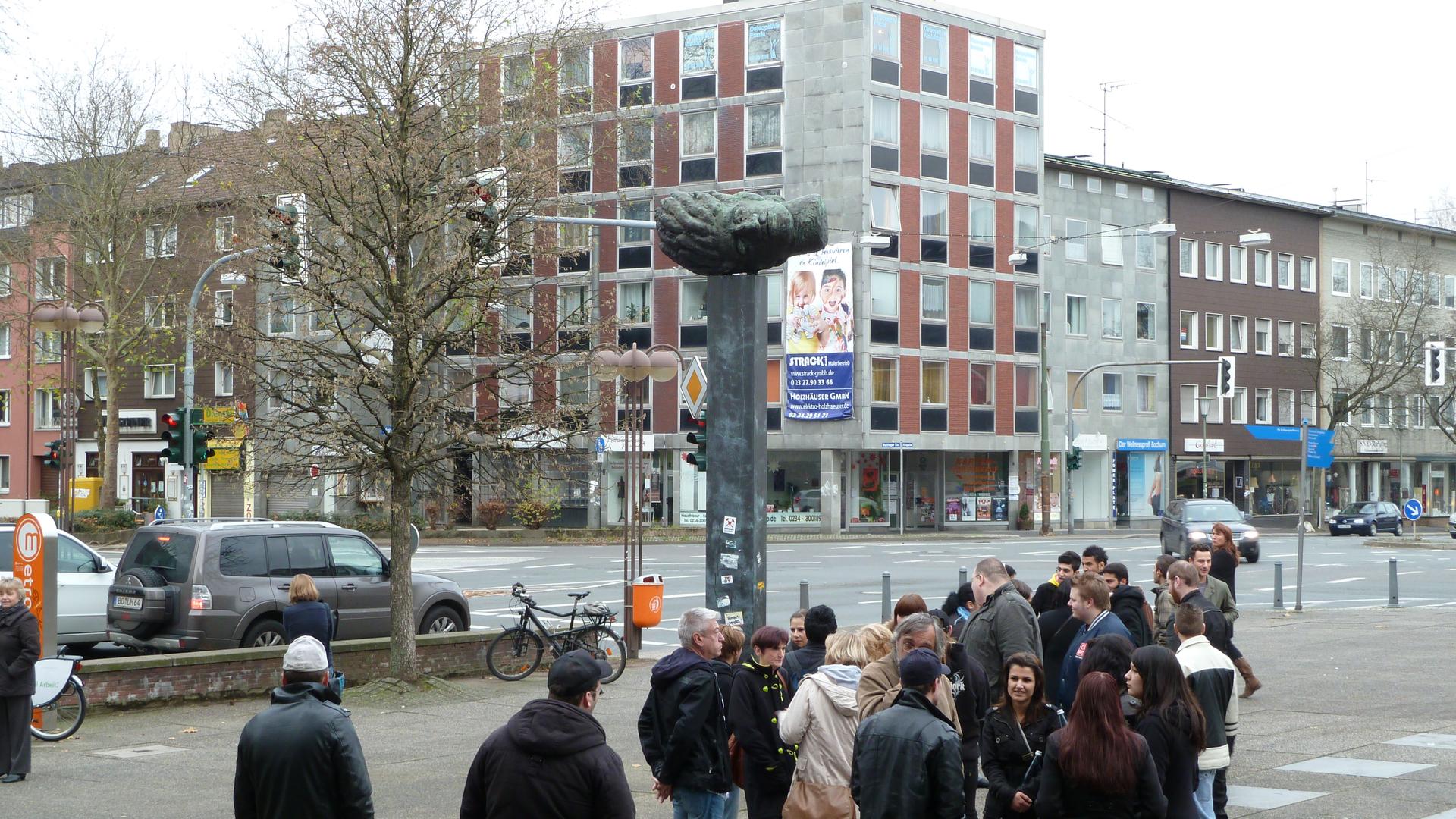 Die Stahlskulptur „Der Mensch“ auf dem Vorplatz des Schauspielhauses wurde gefördert von der Stiftung der Sparkasse Bochum zur Förderung von Kultur und Wissenschaft.