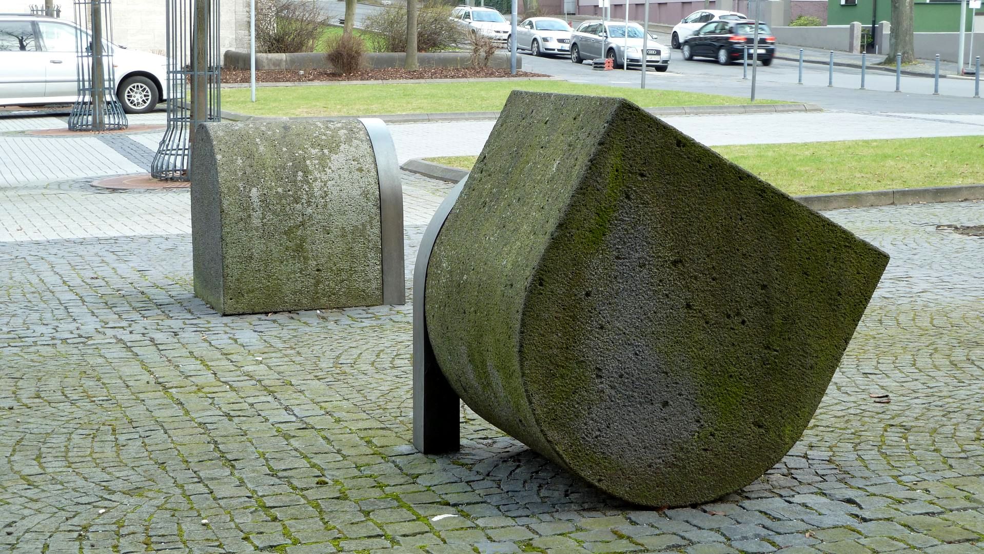 Bei der dreiteiligen Skulptur Zylinder XXXX, 1-3 trat Basaltlava an die Stelle des Holzes.