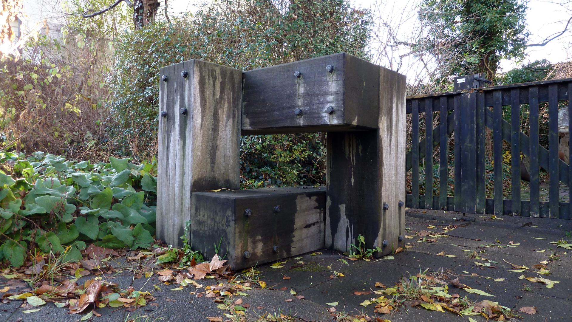 Vor dem Wohnhaus von Diethelm Koch am der Elbestraße 17 in Harpen befindet sich eine Plastik von Diethelm Koch. Der „Würfel III“ ist mit der Werkverzeichnis-Nummer 129 eine relativ frühe Arbeit. Das verwendete Material ist tropisches Bongossi-Holz.
