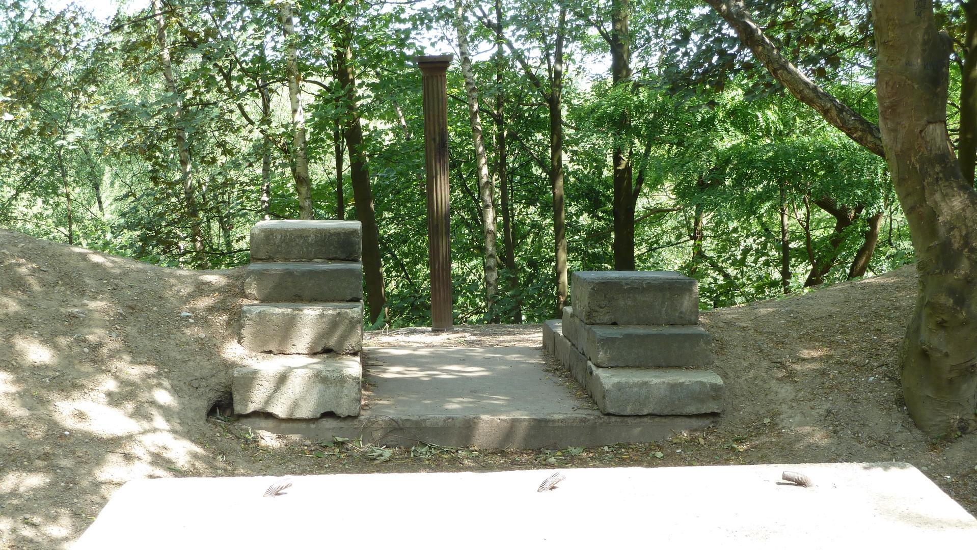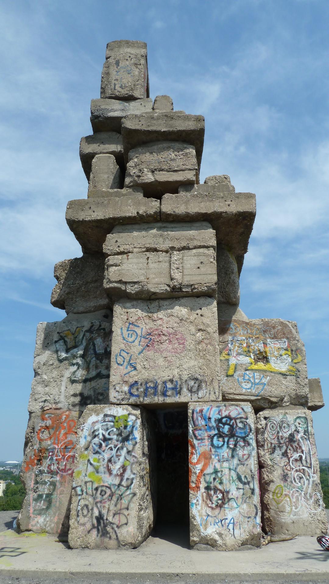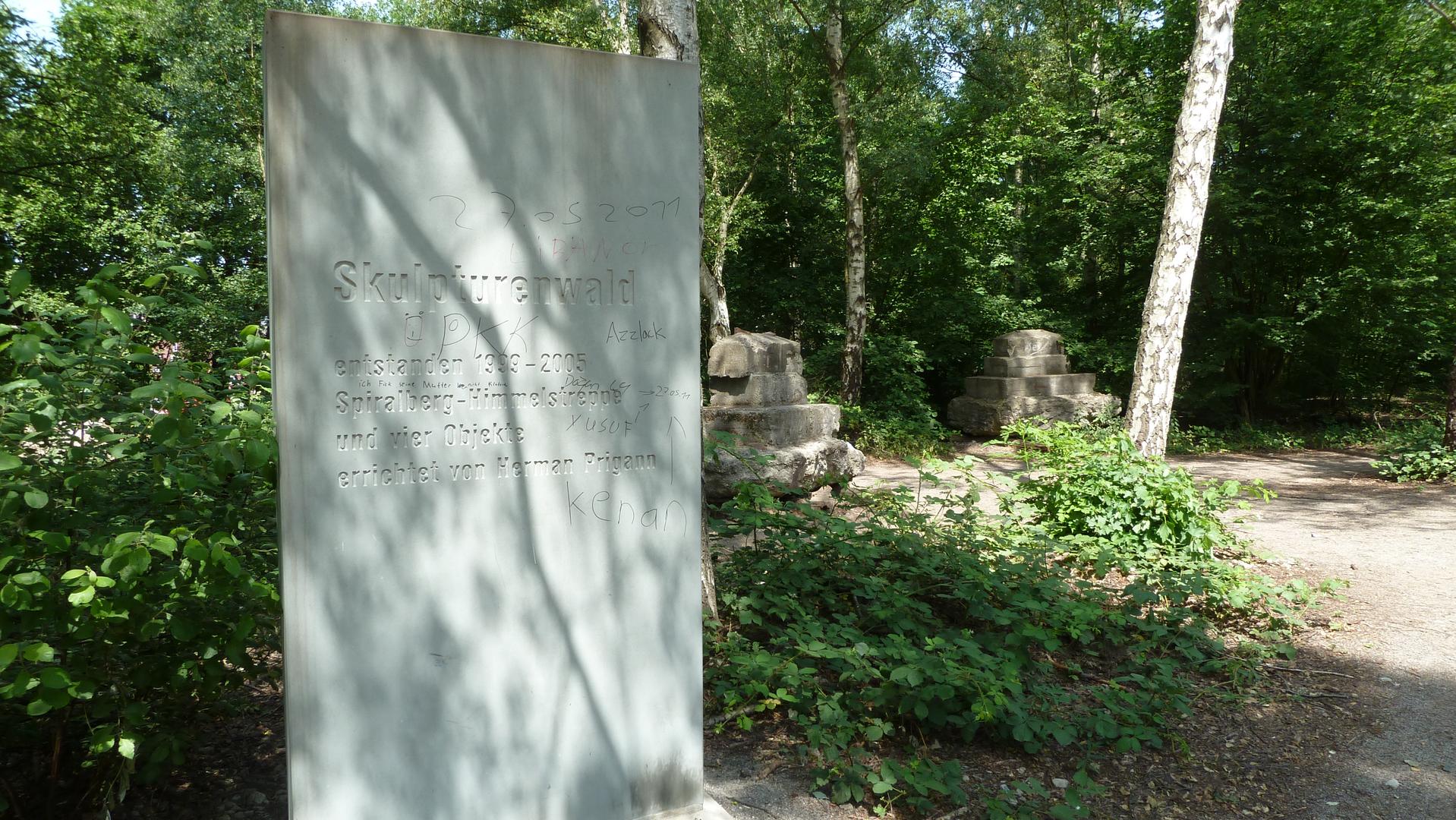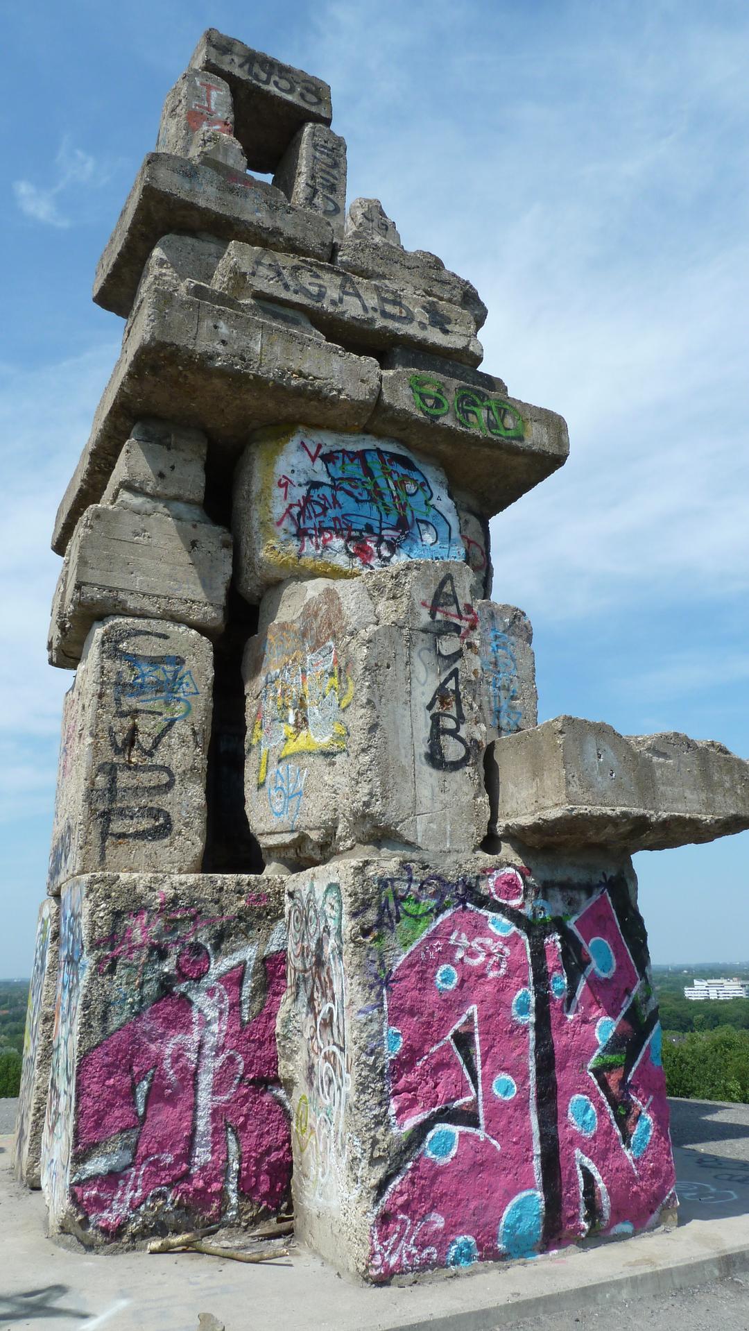 Seit Anfang der 1990er Jahre ließ der Künstler Herman Prigann auf der Halde und im umgebenden Gelände einen „Skulpturenwald“ entstehen. Abfall-Materialien des Industriezeitalters wie Mauerstücke, Betonblöcke und alte Stahlteile bilden in Verbindung mit Naturmaterialien wie Eichenstämmen und Kies archaische Landschafts-Skulpturen. Regelmäßig war Prigann auf dem Rheinelbe-Gelände aktiv, stellte neue Skulpturen auf oder arbeitete an vorhandenen weiter.