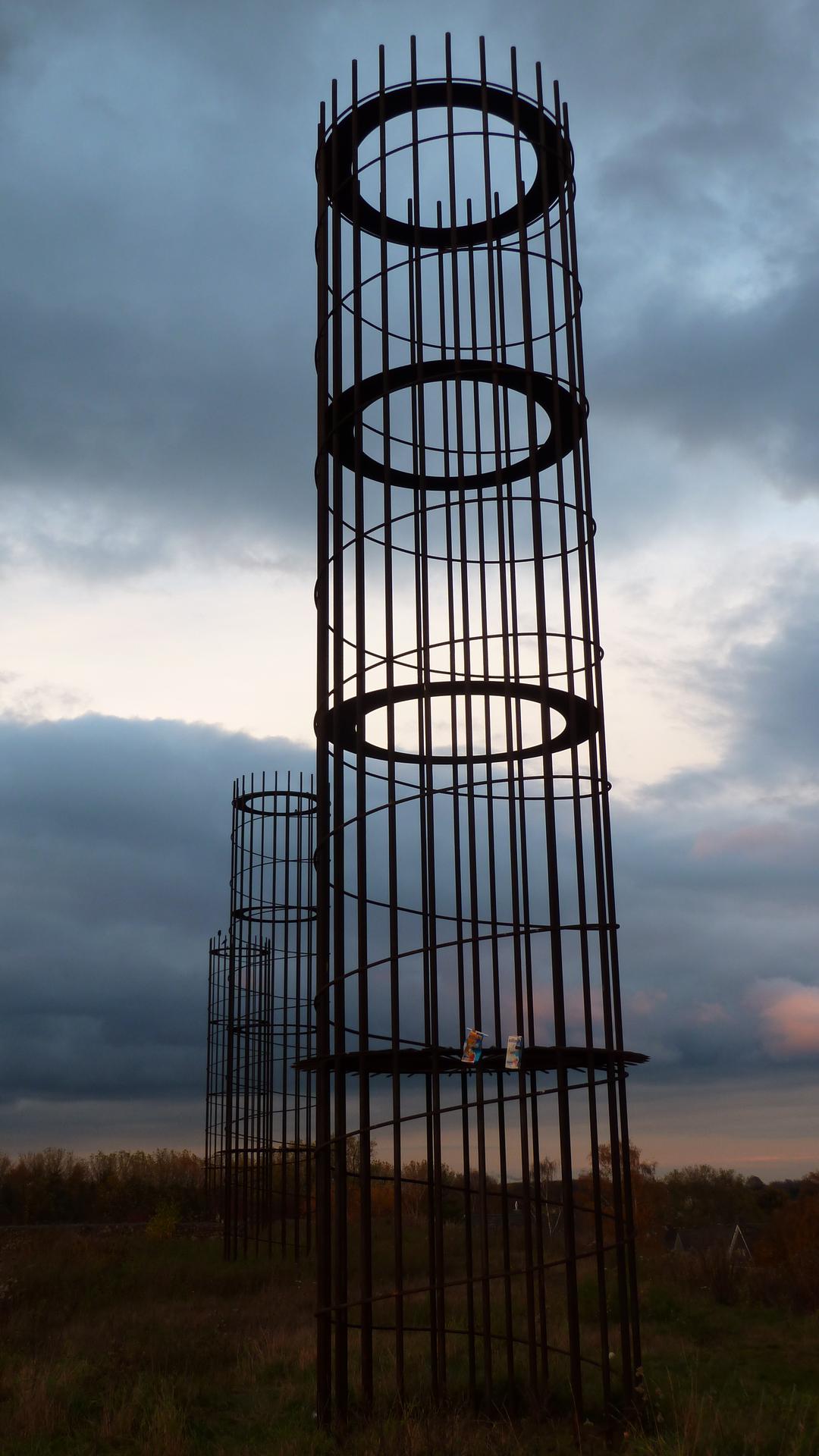 Zwischen den erhaltenen Gebäuden der Zeche Lothringen, heute Heimat des Kulturrats Gerthe, und der Halde Lothringen mit der Installation über(n)ort befindet sich auf einer künstlichen Aufschüttung eine weitere Installation. Drei große Gitterkamine symbolisieren die drei roten Schornsteine des Maschinenhauses von Lothringen Schacht 1, genannt „Die drei großen Herren“, einst das Wahrzeichen von Gerthe. Die Bezeichnung „Die drei großen Herren“ verweist zurück auf die Gründungsväter der Gewerkschaft Lothringen: Fritz Funke, Heinrich Grimberg, Carl Korte