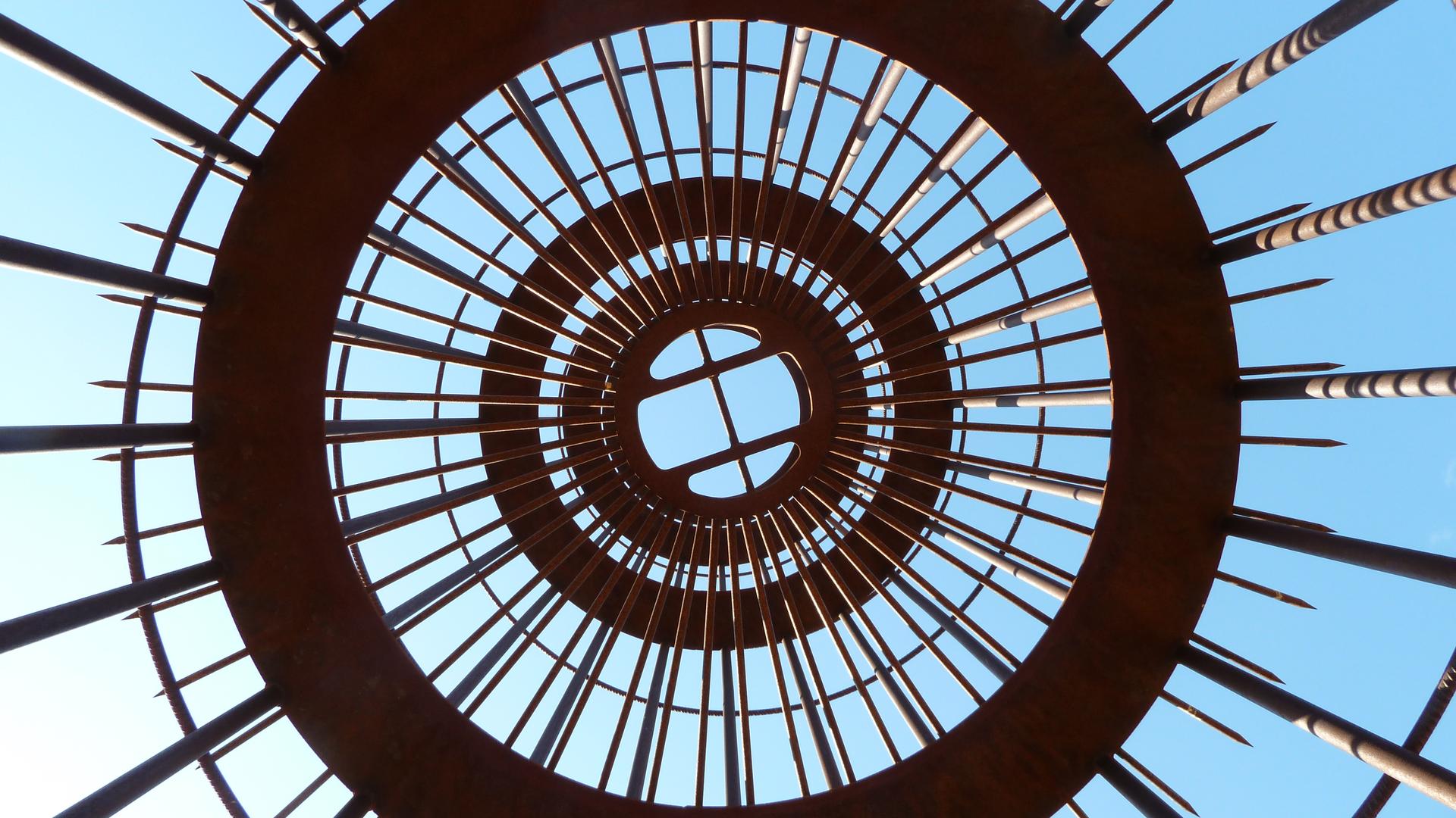 Vom Fuß der „drei großen Herren“ hat man einen guten Blick auf das Gesamtbild der Installation über(n)ort auf der Halde Lothringen.