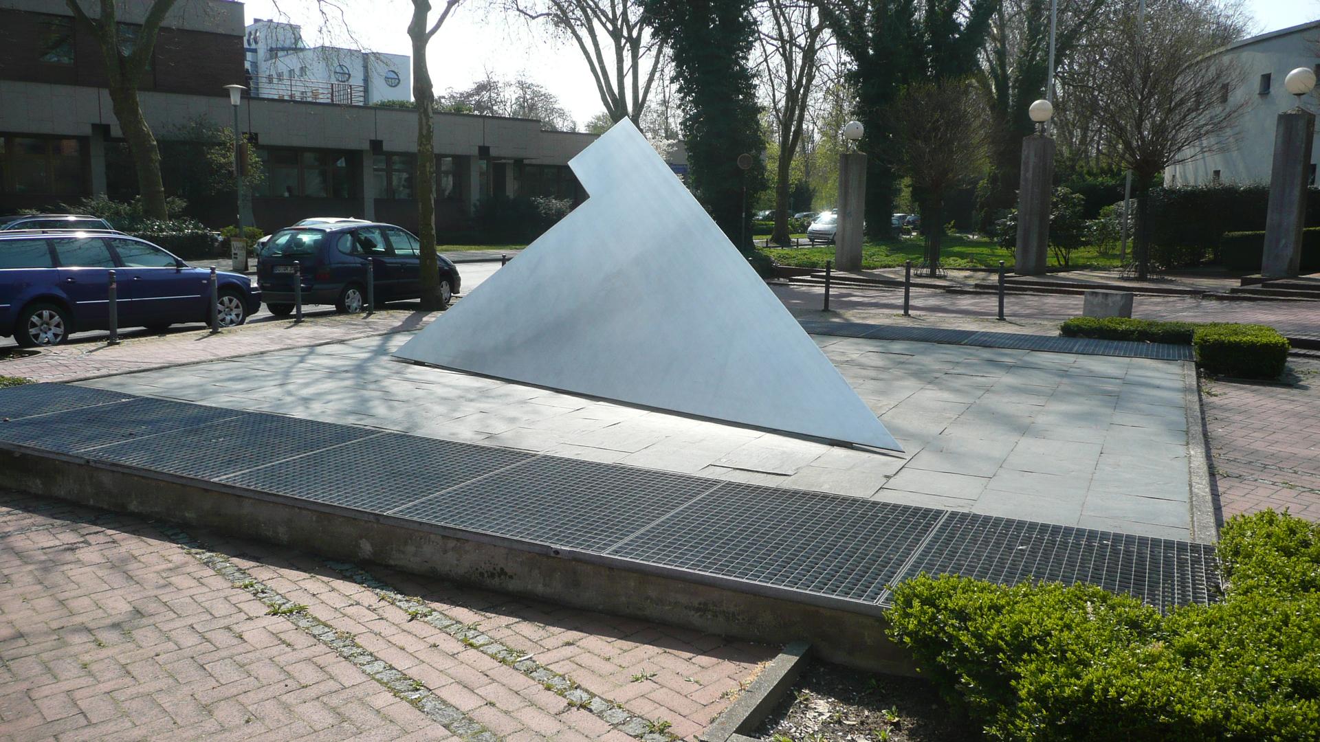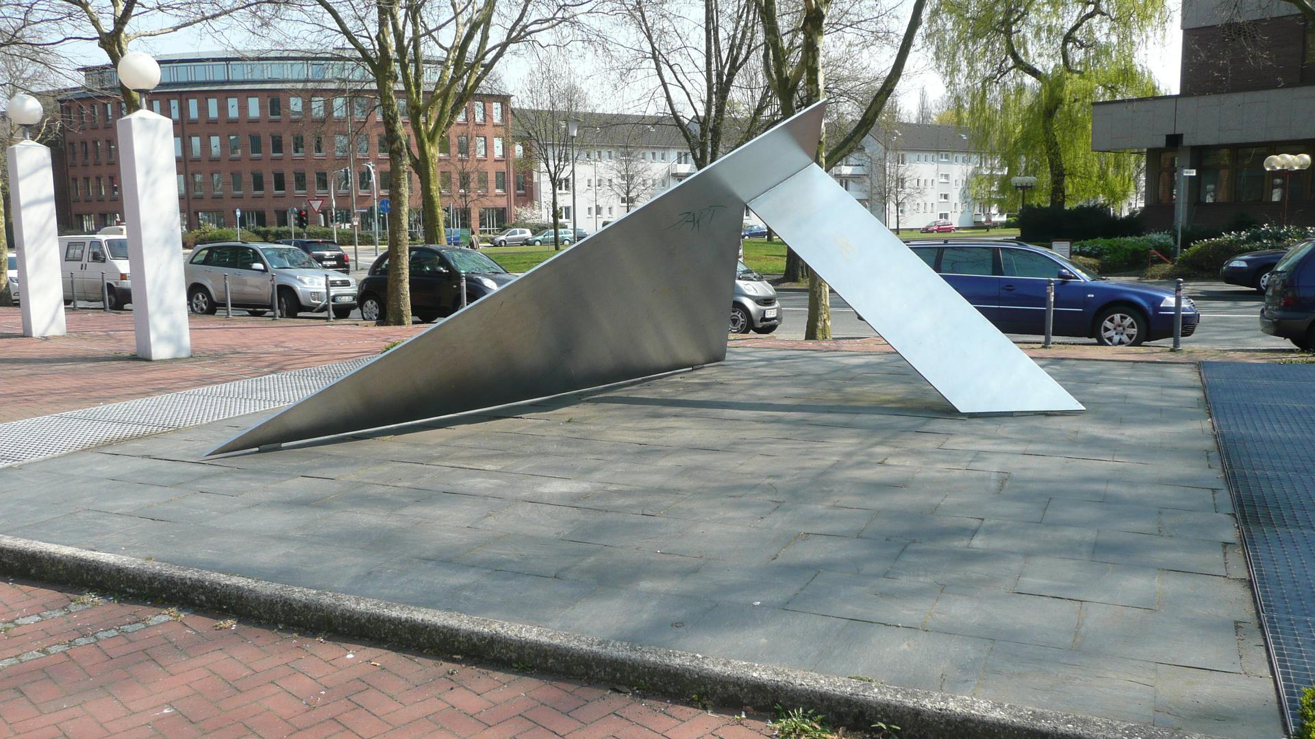 Die Stahlskulptur aus Nirosta, gestiftet von der Volksbank und ThyssenKrupp ist die einzige bekannte Skulptur im öffentlichen Raum