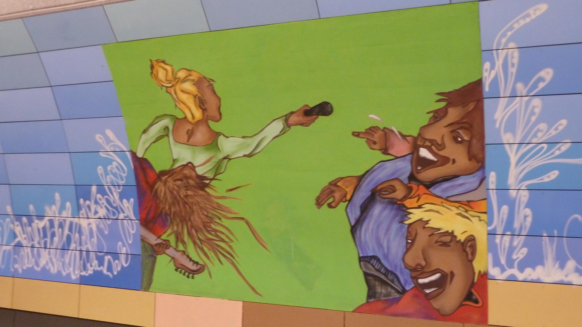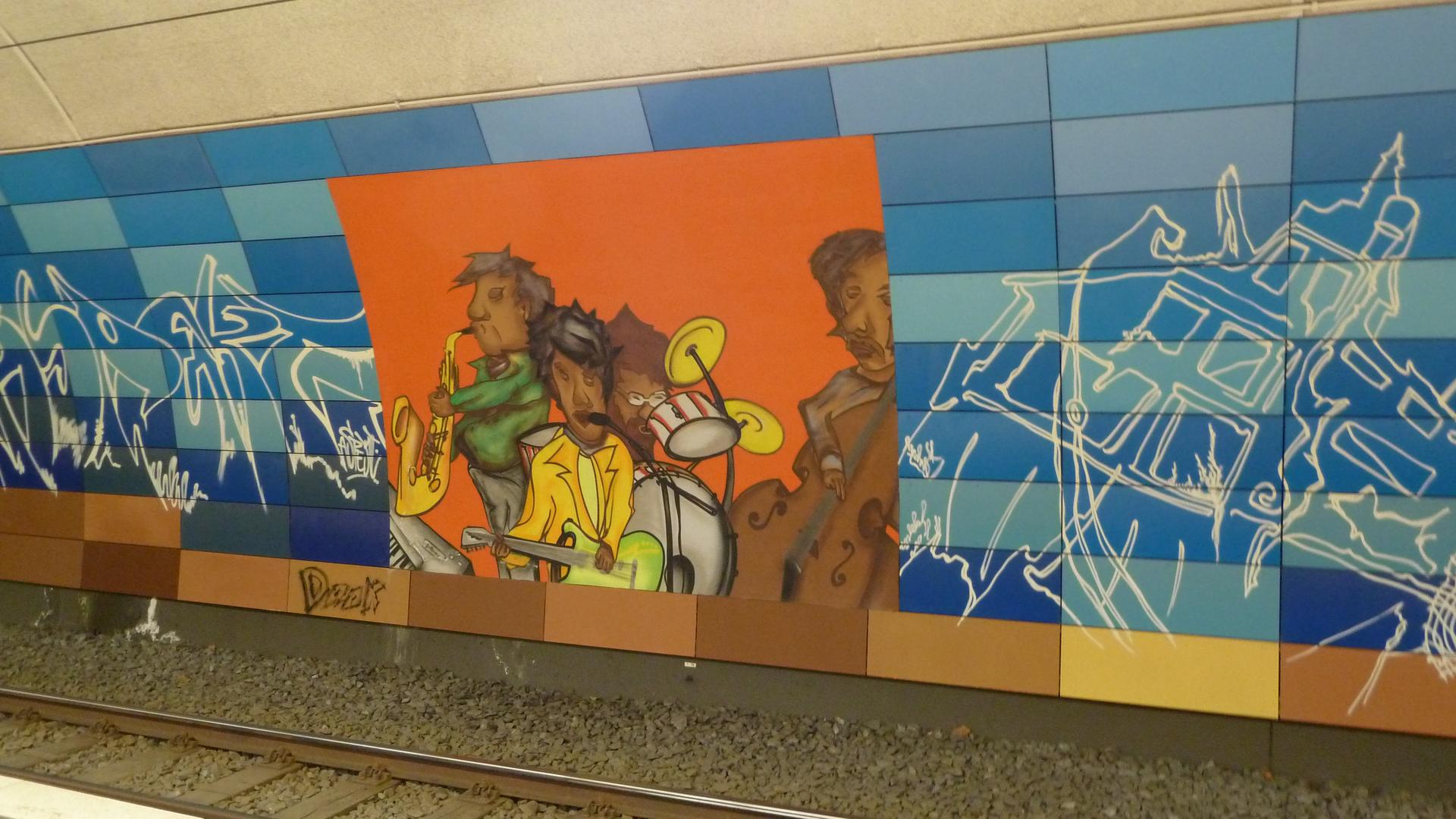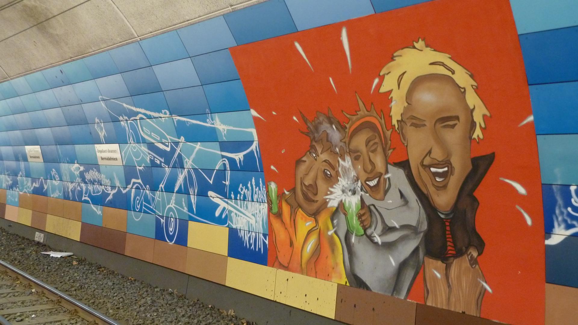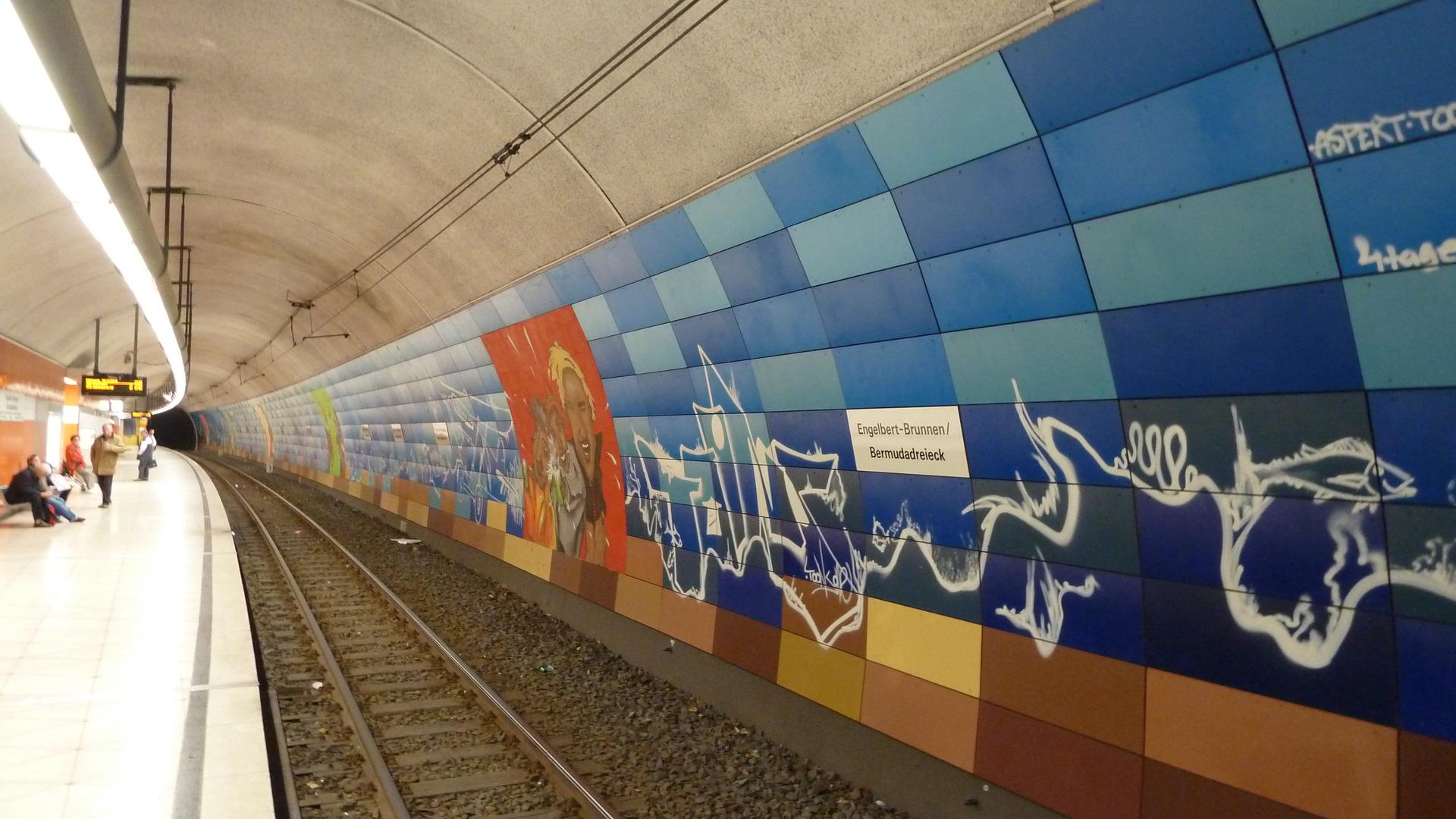 Im Rahmen der Renovierung des 1979 eingeweihten Stadtbahn-Bahnhofs wurden 2004 die Tunnelwände der Bahnsteigebene von verschiedenen Künstlergruppen mit zwei je 110 Meter langen Graffiti gestaltet, die mit den Begriffen Bermudadreieck, Unterwasserwelt und Erlebnismeile spielen.
