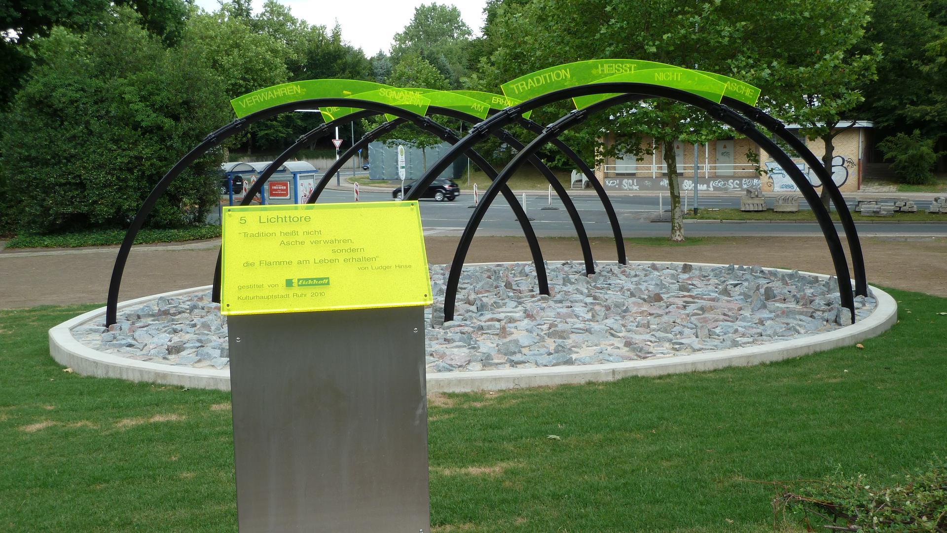 Die Lichttore sind eine künstlerische Auseinandersetzung mit dem Material Stahl, dem Licht und dem Thema Bergbau und Tradition. Sie können verstanden werden als Symbol für den Strukturwandel im Ruhrgebiet.