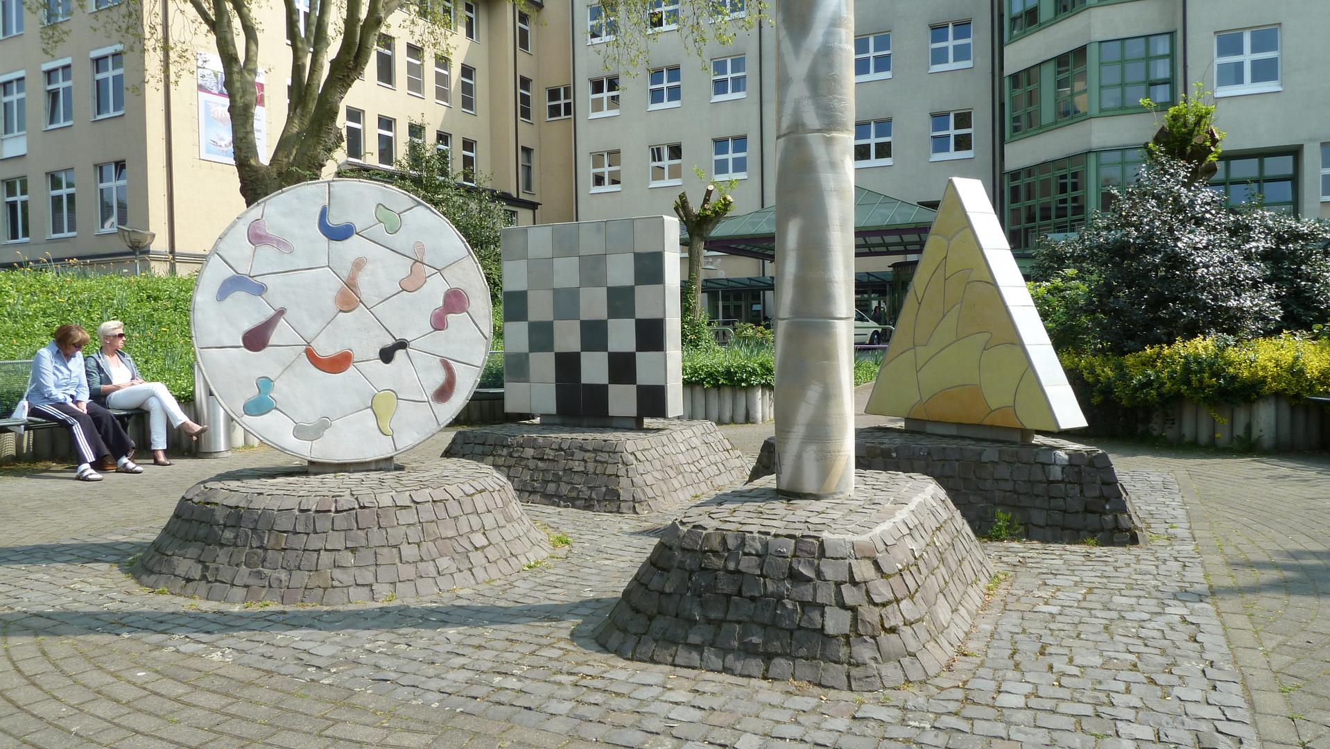 Der Platz der Elemente im Bereich des Haupteingangs entstand 2004. Drei Keramikobjekte in den geometrischen Grundformen Kreis, Dreieck, Quadrat und eine Säule bilden die Elemente. Die harmonischen Farben und Linien der Keramik erinnern zugleich an elementare Formen und Farben der Natur.