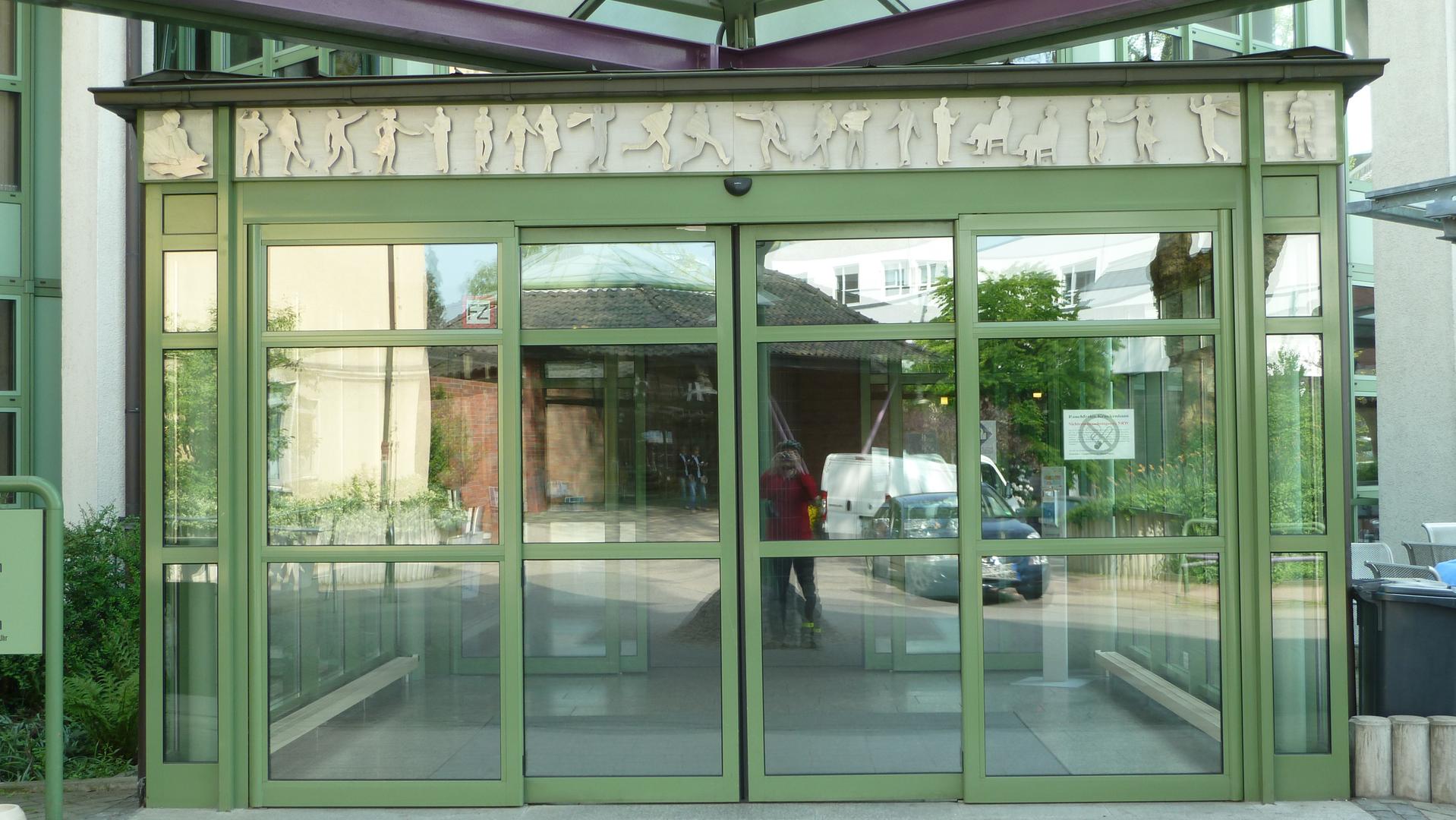 Seit über zwanzig Jahren gestaltet Jochen Schimpfle-Andresen Fassaden und Plätze der Augusta-Kranken-Anstalt Bochum mit seinen vielfältigen Erfindungen aus glasiertem Ton, Stahl und Aluminium.