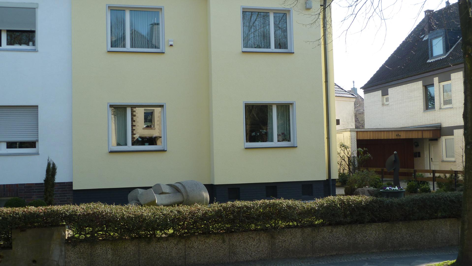 Auch der Auftraggeber und Eigentümer der Plastik vor dem Wohnhaus Franziskusstraße 41 hatte sich gemeldet und gab 12 Antworten auf 12 Fragen.