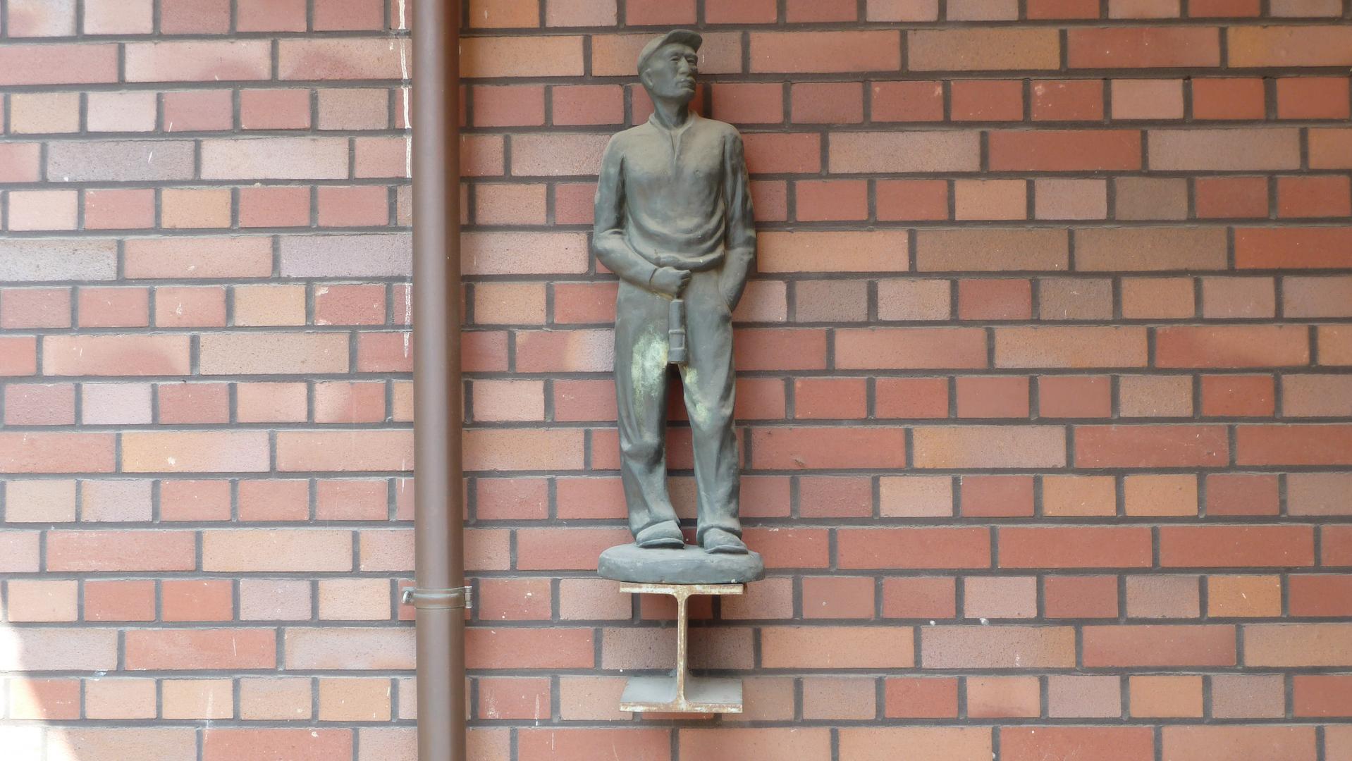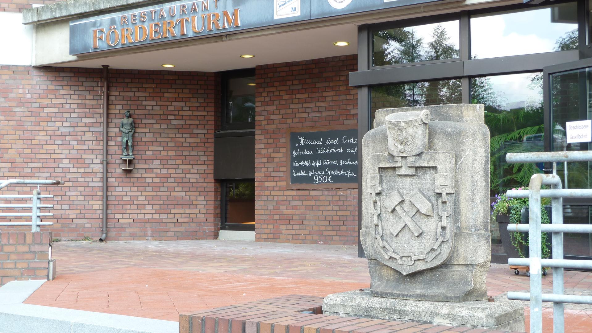 Die Bergmannsfigur am Eingang zum Restaurant Förderturm stammt aus dem Fundus des Bergbau-Museums.