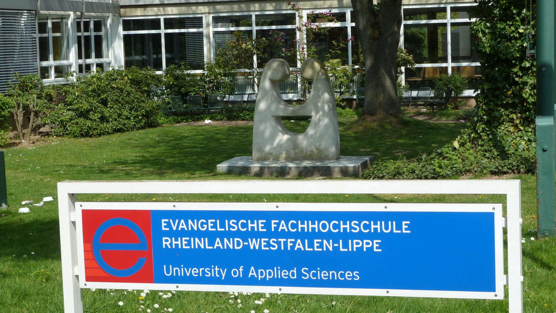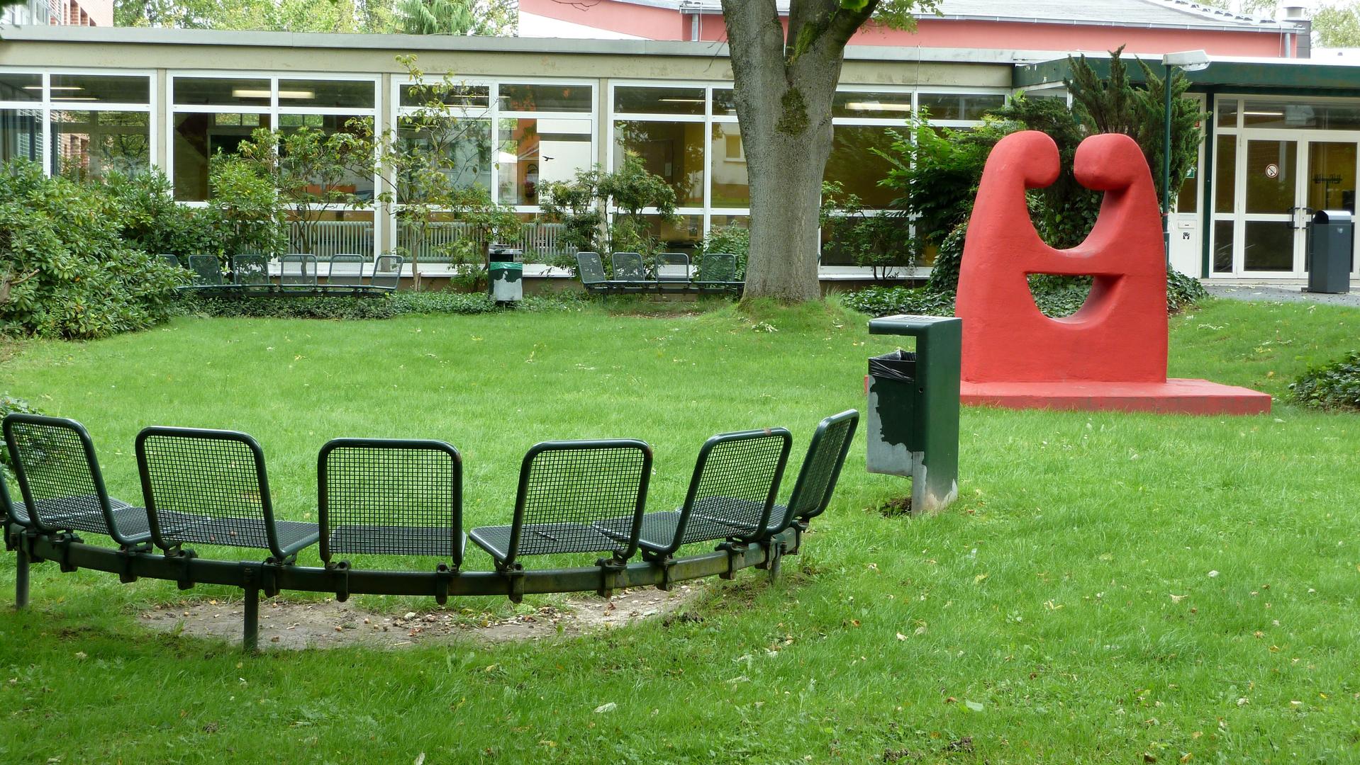 Die Skulptur dient als Wahrzeichen für die Sozialberufe, die in der Evangelischen Fachhochschule gelehrt werden. Die nahebei platzierten Sitzbänke laden zum Verweilen und Reflektieren ein.