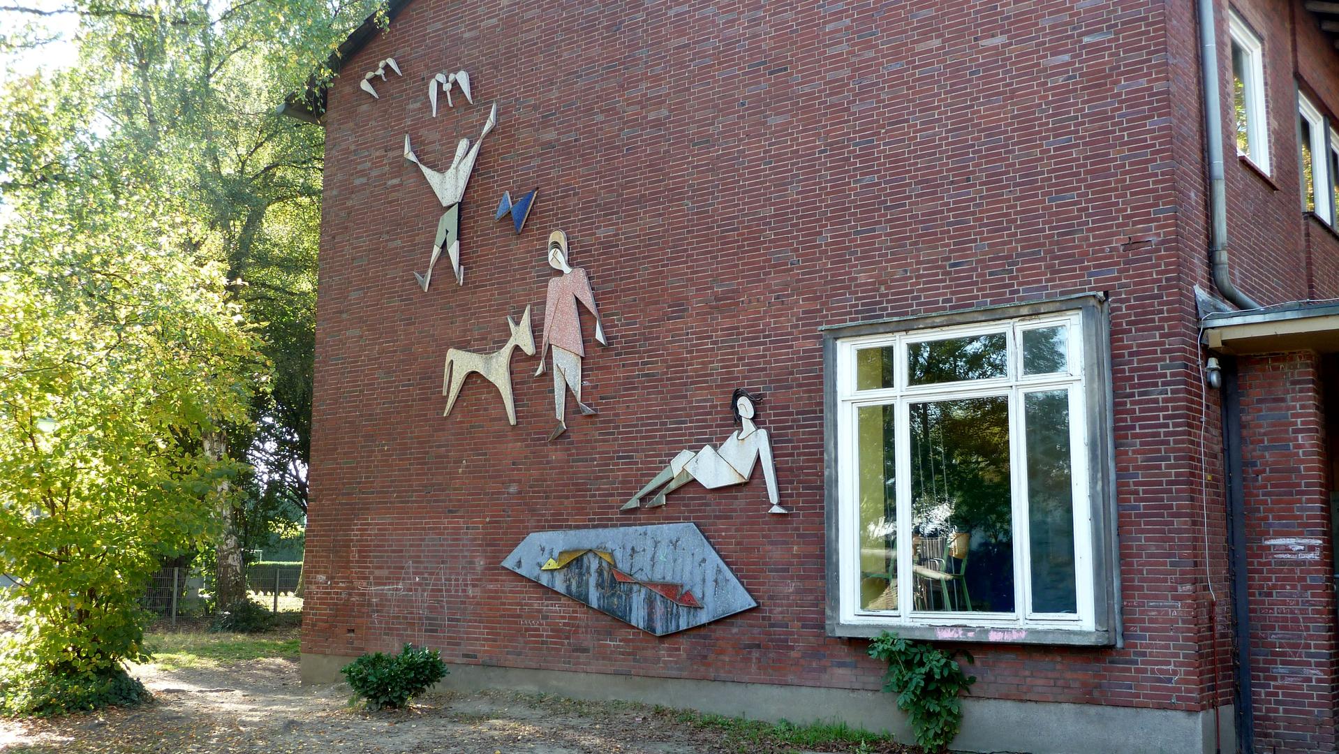 Der Bochumer Künstler Egon Becker schuf 1957 für die Grundschule Am Neggenborn in Langendreer ein Relief aus Betonsteinen, Draht und Mosaik. Es zeigt spielende Kinder, ein Wasserbecken mit Fischen, eine Bergmannskuh (Ziege) und fliegende Vögel am Himmel.