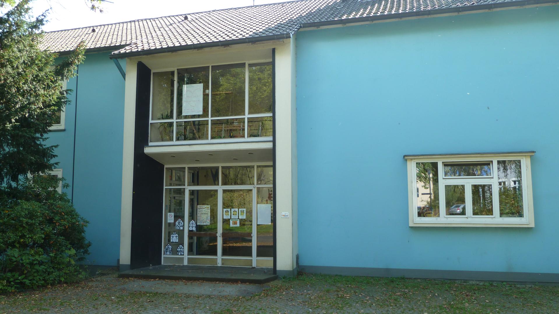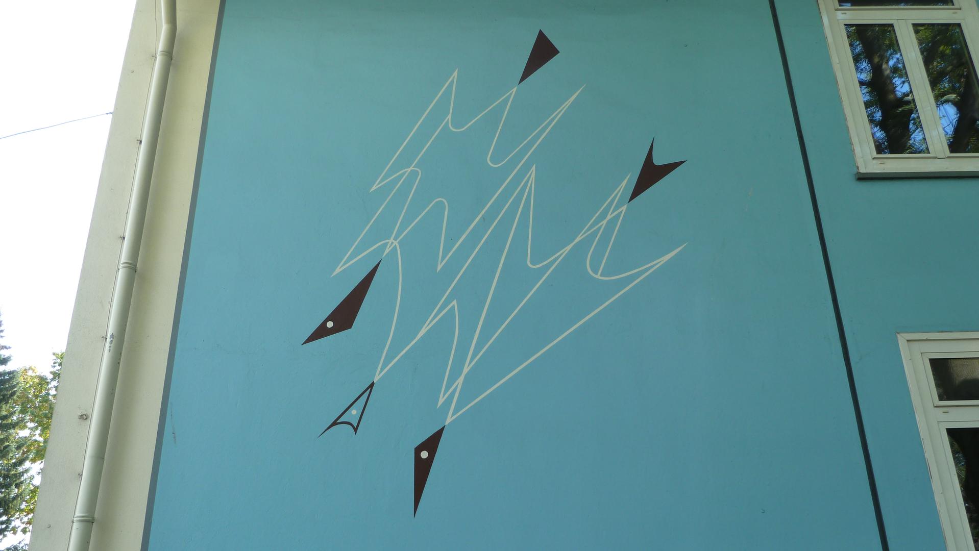Von unbekannter Hand stammt das Wandbild an der Grundschule Somborner Straße. Die Schule wurde 1956 als Volksschule (Grund- und Hauptschule) erbaut.