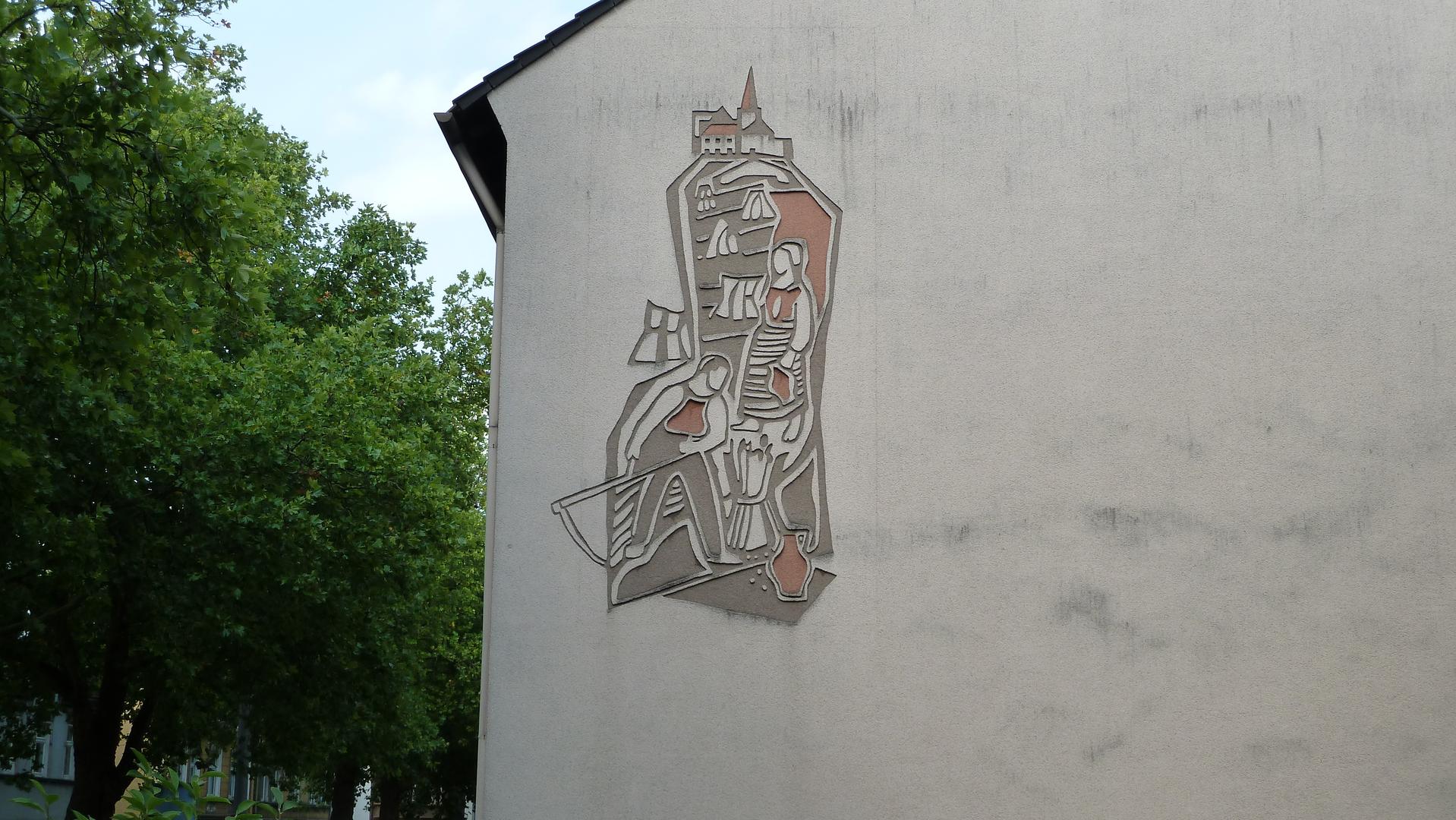 Heinrich Rudolph gehörte nach dem Zweiten Weltkrieg zu den bekanntesten Wattenscheider Künstlern. Für die neue Siedlung der Gemeinnützigen Bau- und Siedlungsgenossenschaft Wattenscheid gestaltete er die Giebelseiten der Häuser an der Hüller Straße mit Sgraffiti.