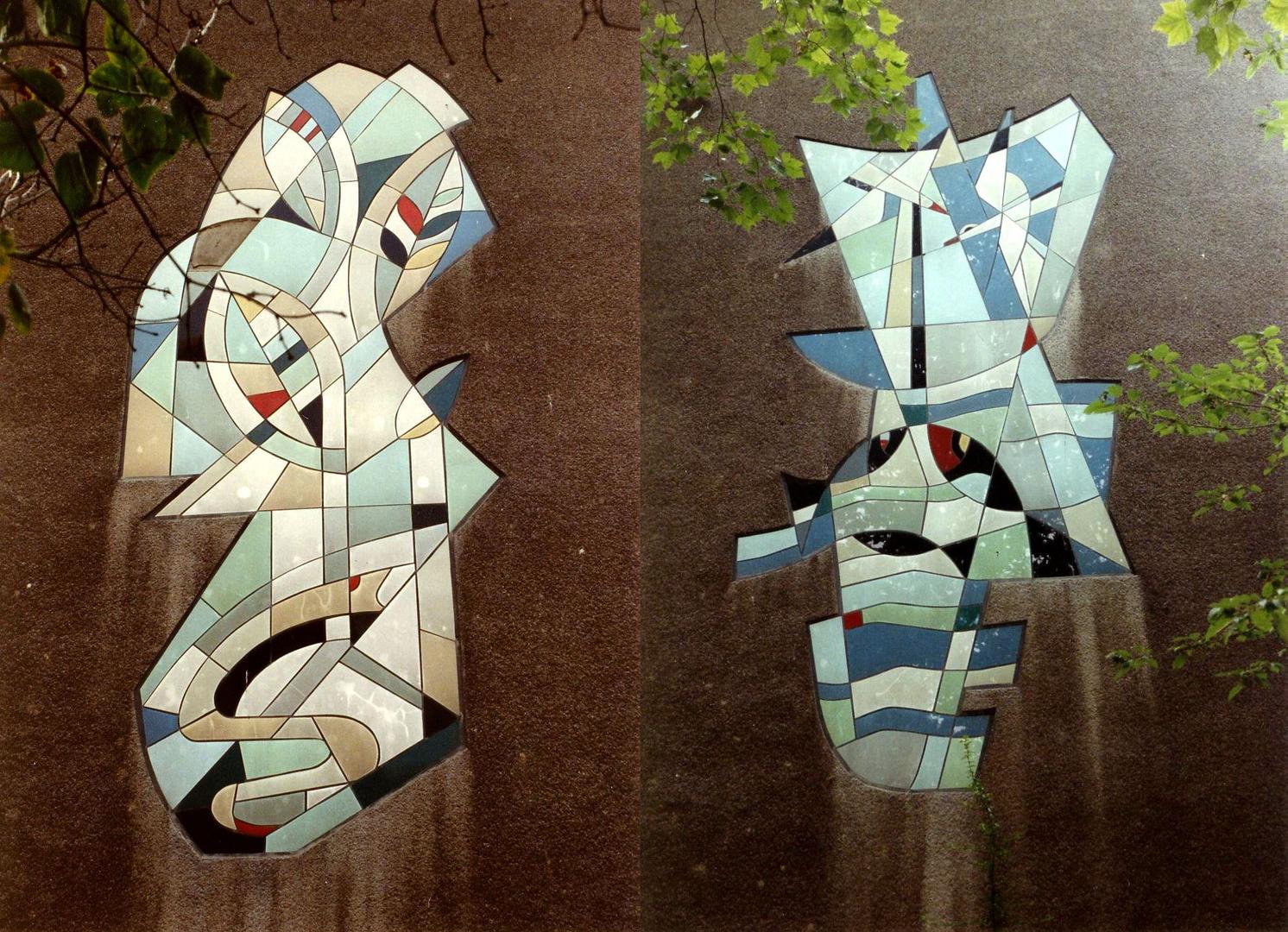 Die Gestaltung der Mosaike erinnert an zeitgenössische Glasmalerei, die in linearer Abstraktion gegenständliche Formen und Umrisse in Linien, Farben und Flächen auflöste.