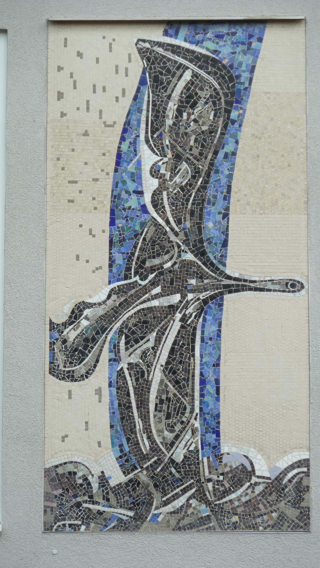 Die Mosaike aus Muranoglas sind abstrakte Darstellungen symbolischer Zusammenhänge. „So wird etwa der Begriff des Sehens oder Schauens bildhaft gefaßt in der Andeutung eines menschlichen Kopfprofils, in dem das Auge – das Auge des Dichters – symbolhaft dominiert. Ein Eichbaum deutet auf das Verwurzeltsein im heimatlichen Boden, ein Vogelflug übers Meer hin auf das Fernweh, Diana mit dem Bogen auf Anmut und Freiheit, der Vogel Phönix auf das Emporschwingen in die geistige Welt, der Griechengott Pan auf die Ursprungswelt unserer Kultur.“ (Ruhr-Nachrichten, 2.12.1961)