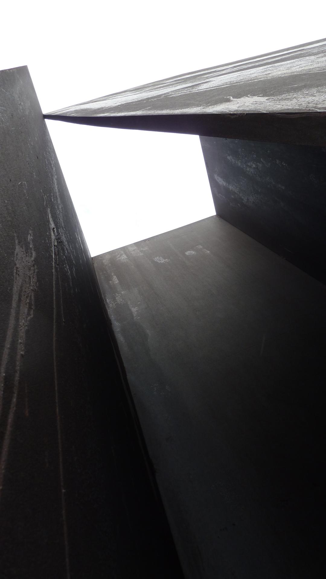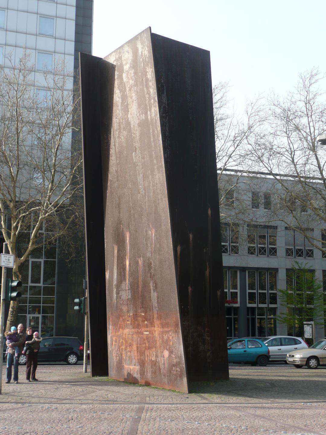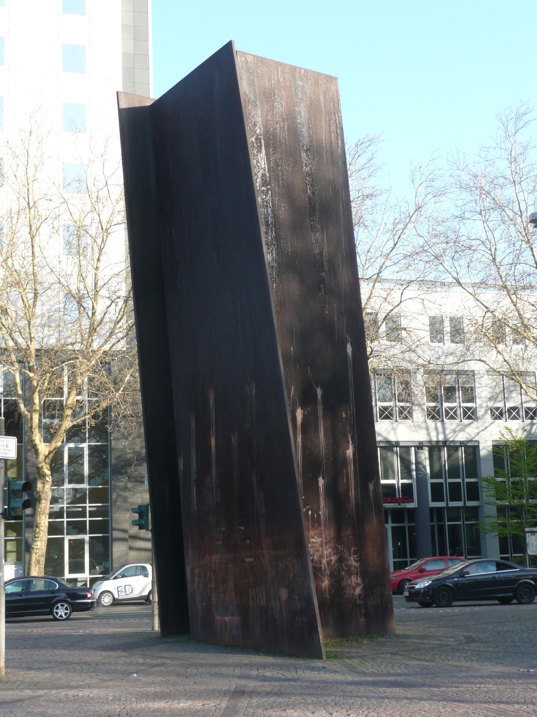 Obwohl man annehmen möchte, dass eine Konstruktion aus vier Stahlplatten, zumal eine Konstruktion aus vier gleichen Stahlplatten, nicht übermäßig kompliziert sein kann, lässt sie sich nicht wirklich in ihrer Gesamtheit denken. Ein Grund für diese Irritation ist, dass die wirksamen Kräftevektoren durch die Unregelhaftigkeit und Schrägstellung der gesamten Skulptur nicht mit den Richtungen, Linien und Flächen des materialen Gebildes identisch sind: Die Form bildet ihr eigenes Kraftfeld nicht ab, so dass nicht wirklich ersichtlich wird, wie dieses asymmetrische Gefüge sein Gleichgewicht hält.