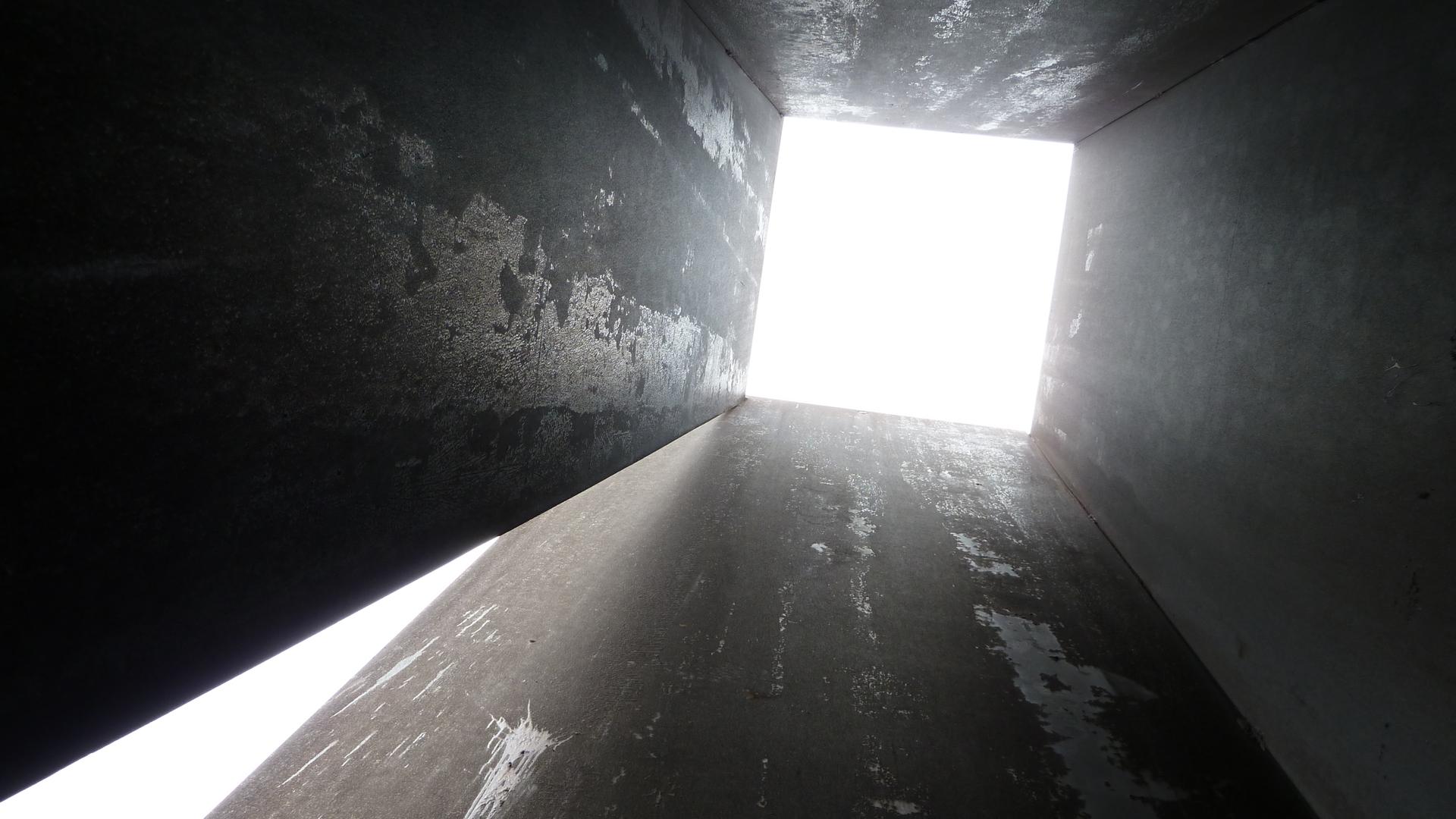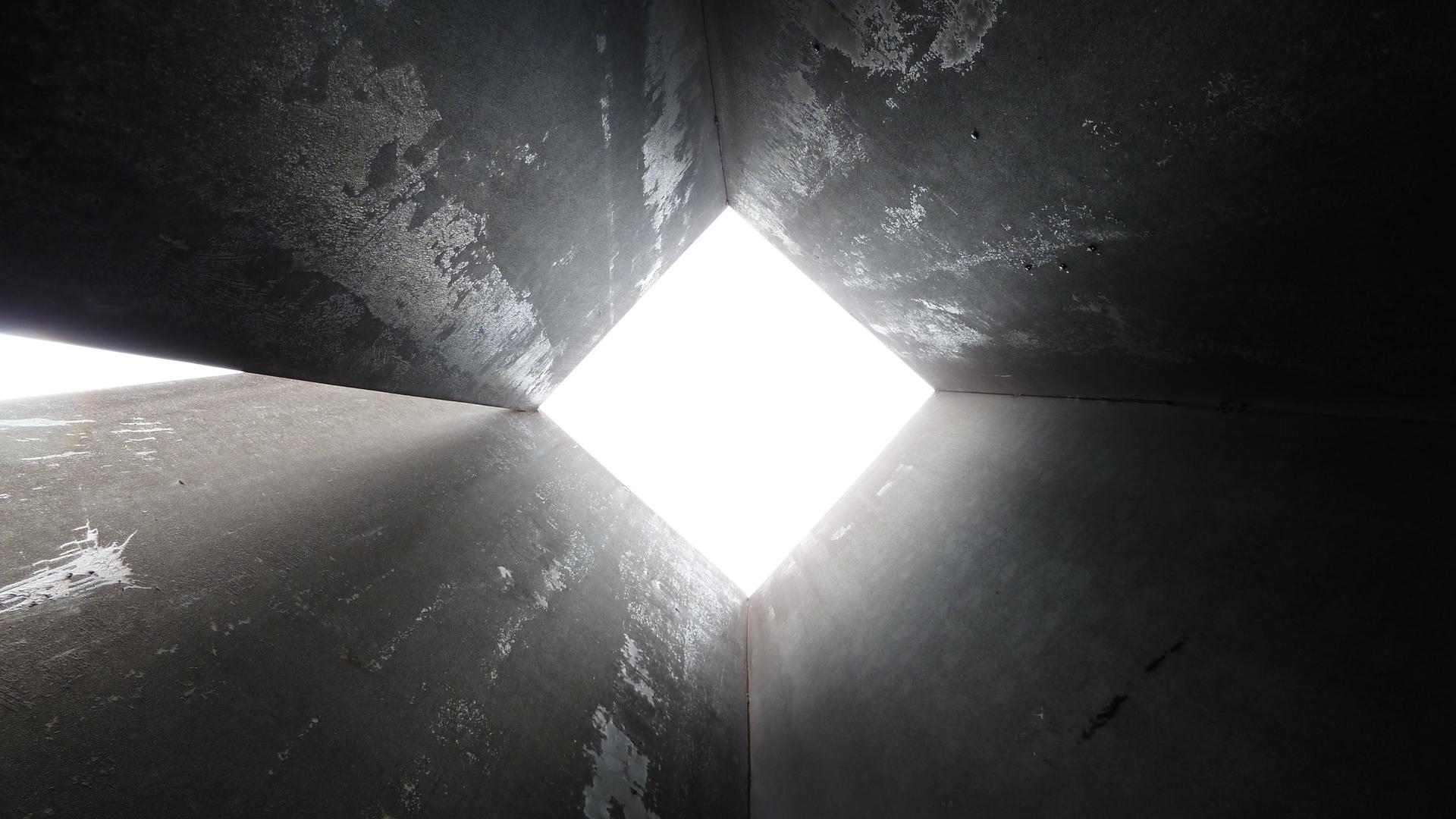 Das Terminal ist ebenso einfach wie vertrackt. Auf den ersten Blick ist es ein simples Kartenhaus aus rechteckigen Stahlplatten. Auf den zweiten Blick muss ein dritter und vierter folgen, um zu erkennen, dass das Terminal sich dem Betrachter aus jeder Perspektive anders präsentiert. Die Wahrnehmung der Skulptur ist abhängig vom Standpunkt des Betrachters. Die Skulptur scheint jederzeit kippen zu können. Der größte Widerspruch offenbart sich im Innenraum: Der sichtbare Himmelsausschnitt bildet ein perfektes Quadrat.