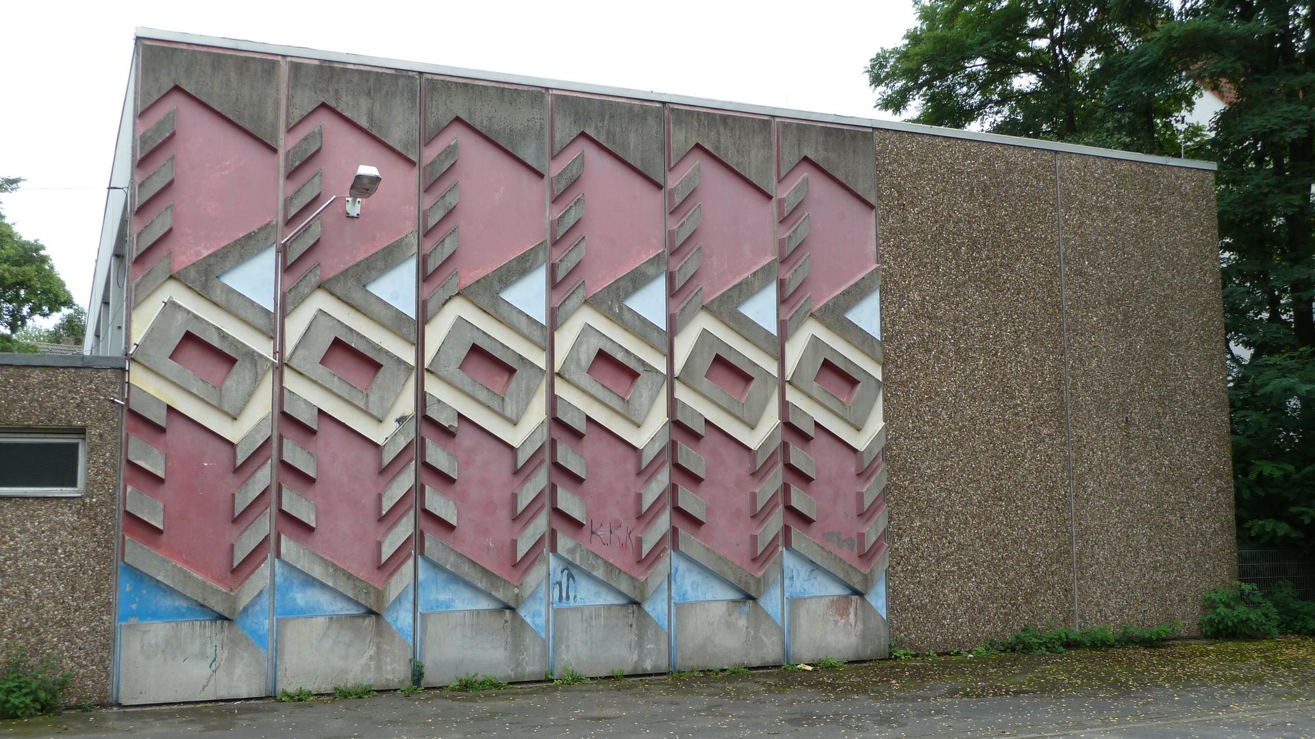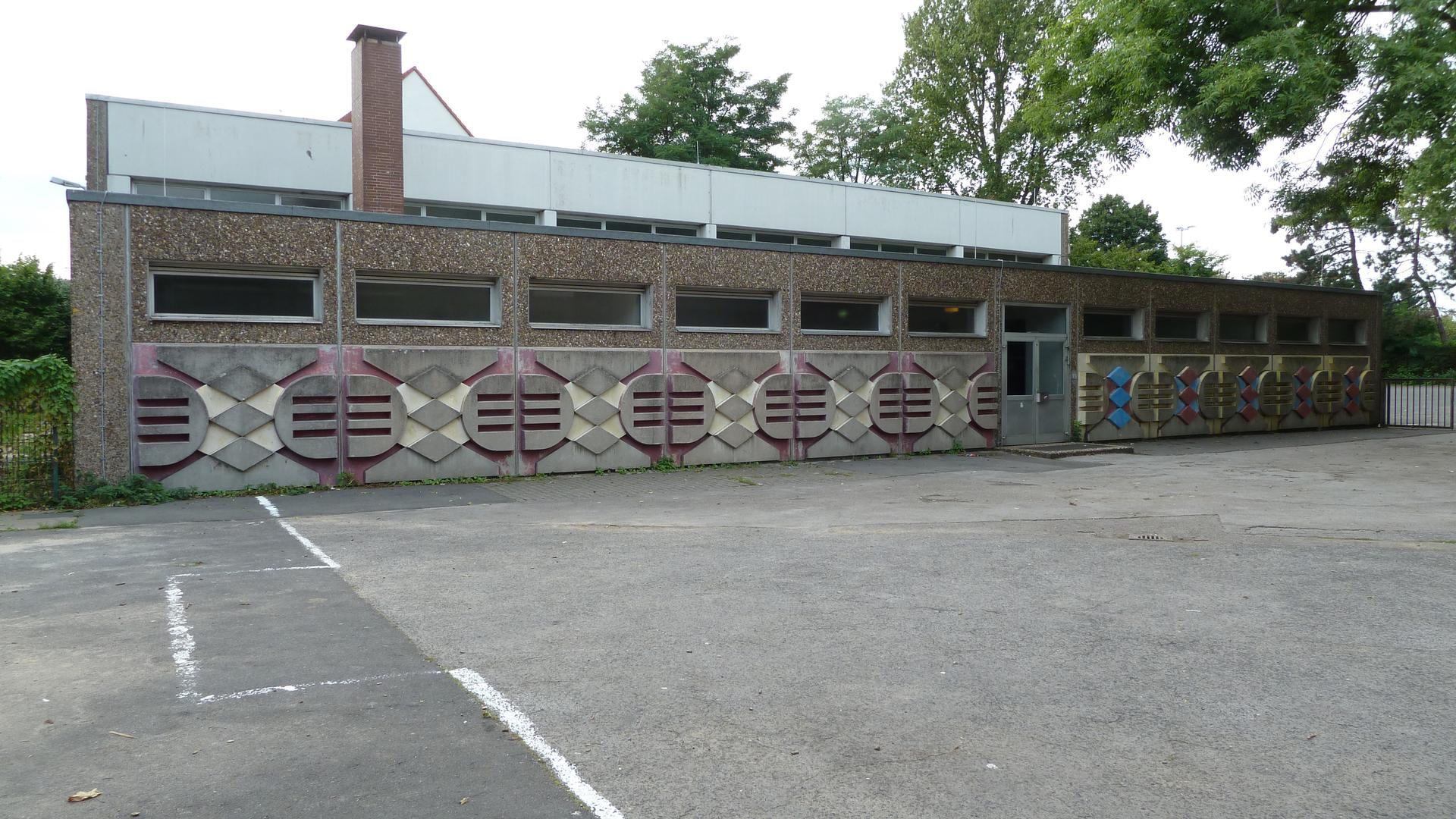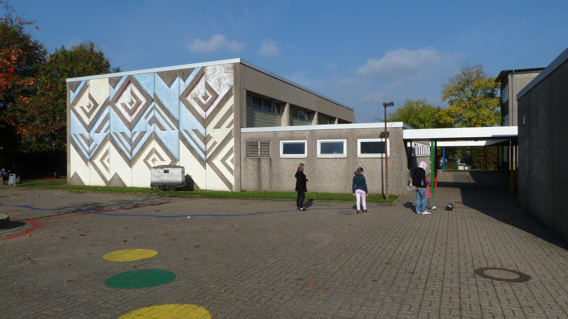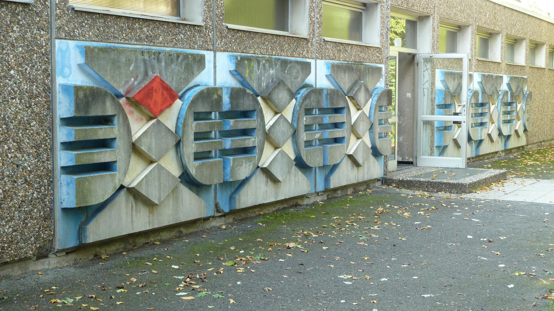 Die Wandreliefs an allen Schulgebäuden sind aus vorgefertigten, standardisierten „multiplen Elementen“ zusammengesetzt und ergeben durch unterschiedliche Drehungen und horizontale oder vertikale Anordnungen der Elemente abwechslungsreiche geometrische Kompositionen. Zusätzlich wurden die Reliefs mit den Grundfarben Rot, Gelb und Blau farbig gestaltet. Auf der Basis des genormten Ausgangsmaterials entstand eine vielgestaltige, farbige Kunst, die zudem kostengünstig herzustellen war.