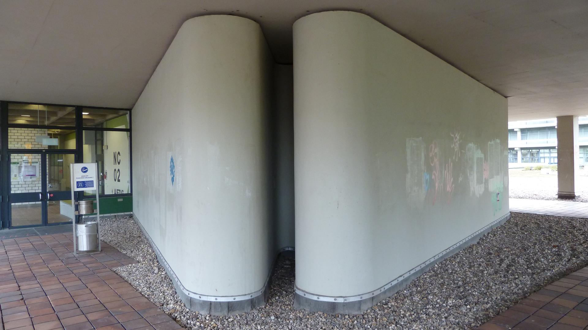 Das Kunst-am-Bau Konzept der 60er Jahre war auch für die RUB ausschlaggebend. Die Architektur hatte rein funktional den Bedürfnissen einer Denkfabrik zu folgen, während die bildende Kunst zweckfrei ihren eigenen Gesetzen folgte. Betrachtet man die verschiedenen 'Kunst am Bau'-Objekte, so fällt auf, dass die einzelnen Wandgestaltungen wie großformatigen Tafelbilder an jenen Stellen platziert wurden, die die Architektur freigibt - und dass überdies die Künstler nur selten auf die umgebende Architektur eingegangen sind.