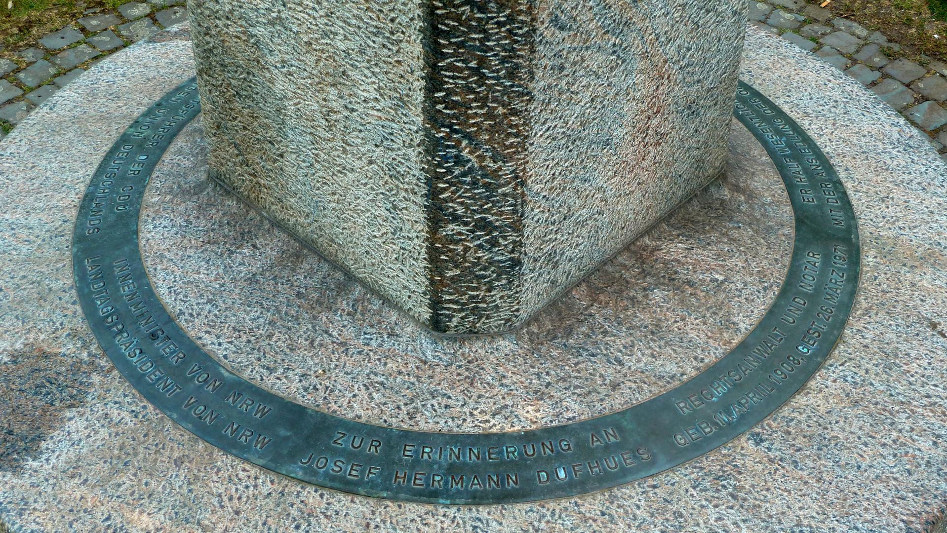 Das Denkmal für den nordrhein-westfälischen CDU-Politiker Josef Hermann Dufhues (1908-1971) ist neben dem Kugelbrunnen am Dr.-Ruer-Platz das zweite Werk von Jan Bormann in Bochum.