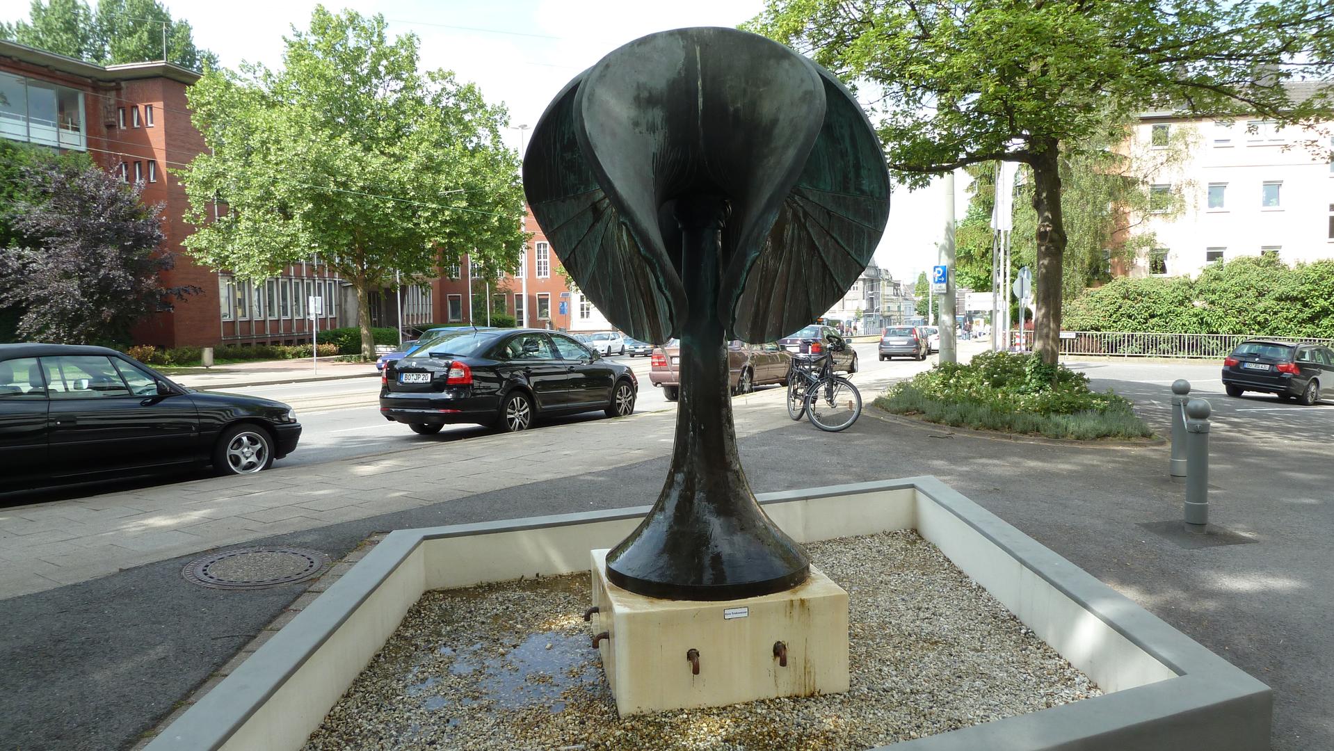 Der Brunnen hat keinen Titel bekommen, weil es dem Betrachter überlassen bleiben soll, das Spiel der Linien, Formen und des Wassers auf sich wirken zu lassen, für sich zu entdecken und dem Gesehenen selbst eine Bedeutung zu geben. In Zeitungsberichten zur Enthüllung am 18.7.1980 war die Rede von einem „Weichtier aus Bronze“ oder einer „Muschel mit Wasserstrahlen“.