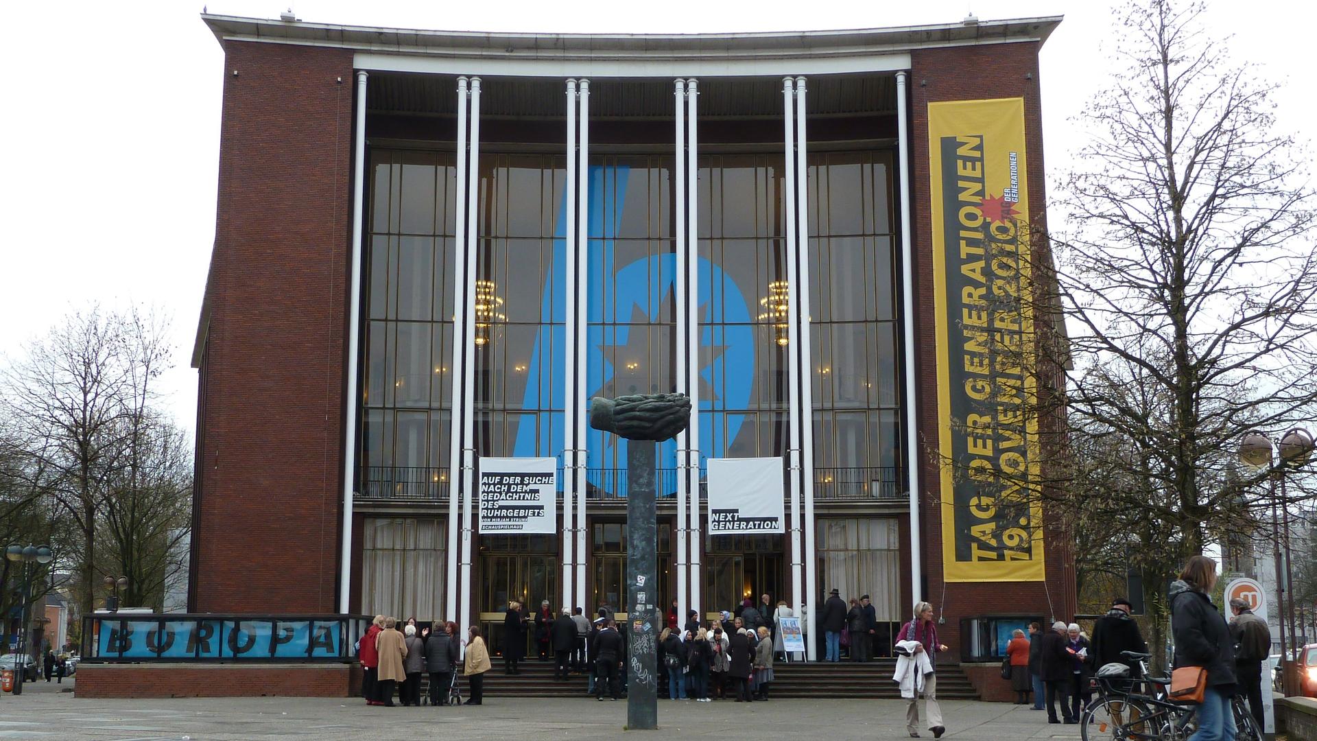 Die Stahlskulptur „Der Mensch“ auf dem Vorplatz des Schauspielhauses wurde gefördert von der Stiftung der Sparkasse Bochum zur Förderung von Kultur und Wissenschaft.