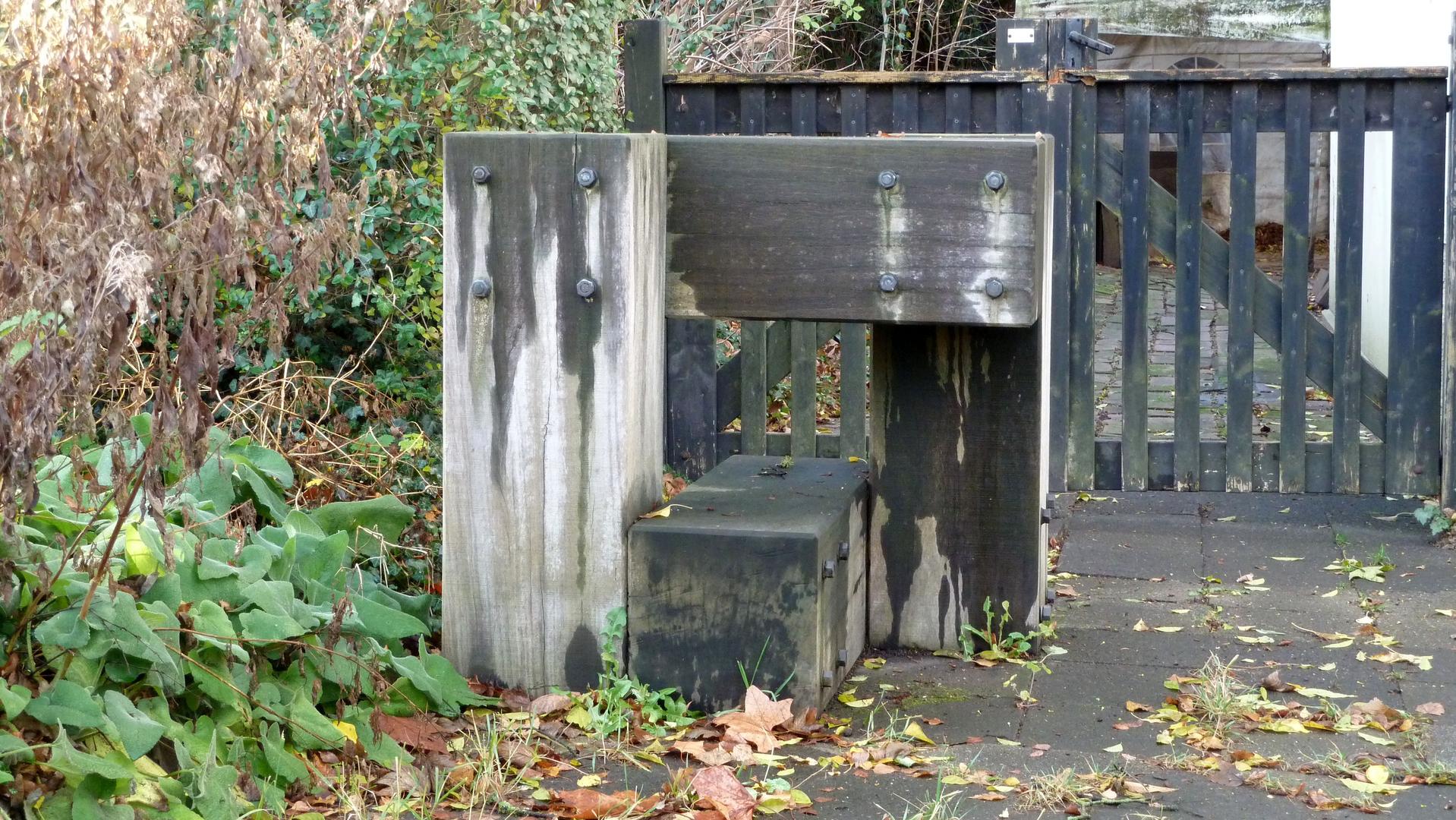 Die Stahlelemente fügen sich in dafür vorgesehene Aussparungen im Holz. Die Farbe des Holzes und des oxidierten Stahls bilden eine weitgehende optische Einheit.