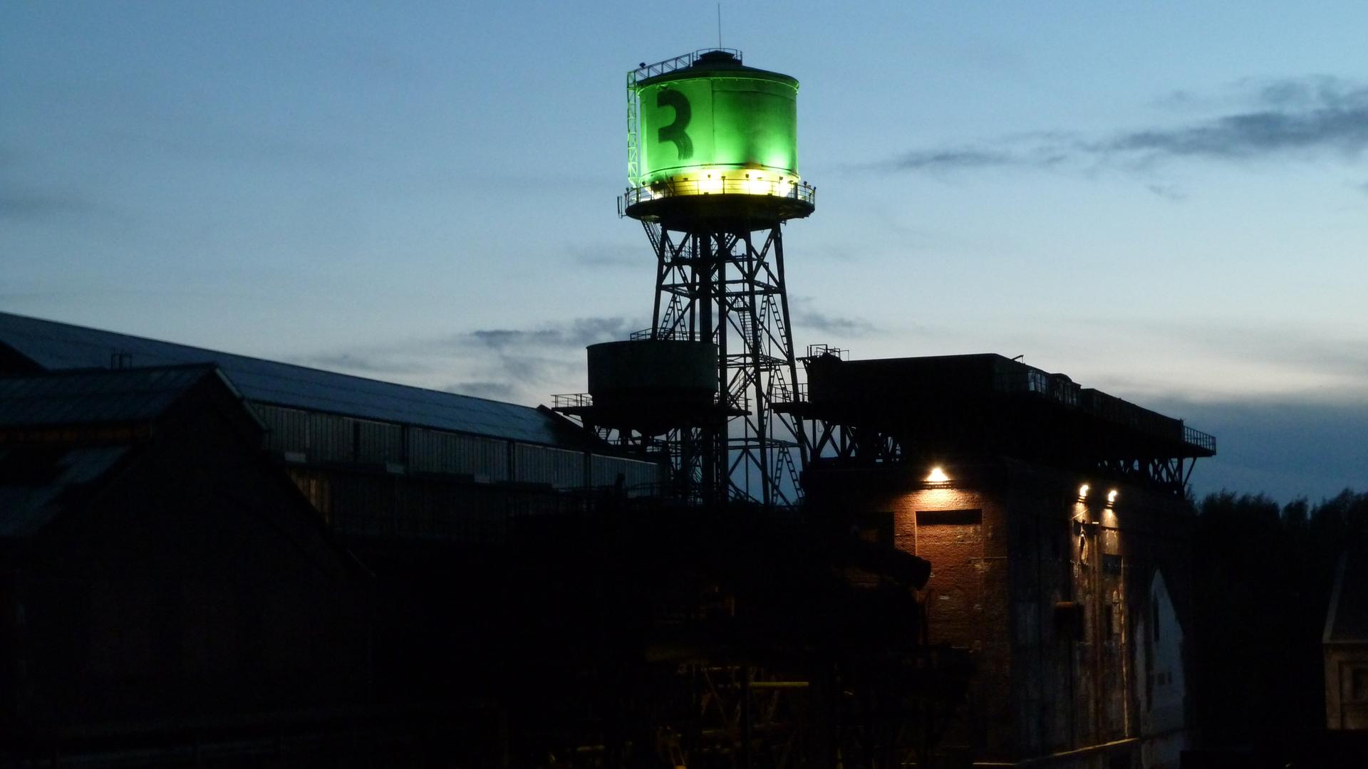 Die nächtliche Beleuchtung ist im Winter 2007 durch die „Wasserwelten“ ergänzt worden. Der Wasserturm neben der Jahrhunderthalle leuchtet grün, die beiden Betonkühltürme leuchtend blau und das Kühlwasserbecken ist orange illuminiert. Weitere Akzente setzen die Innenbeleuchtung abgetrennter Rohrleitungen und die Ausleuchtung der Brücken.