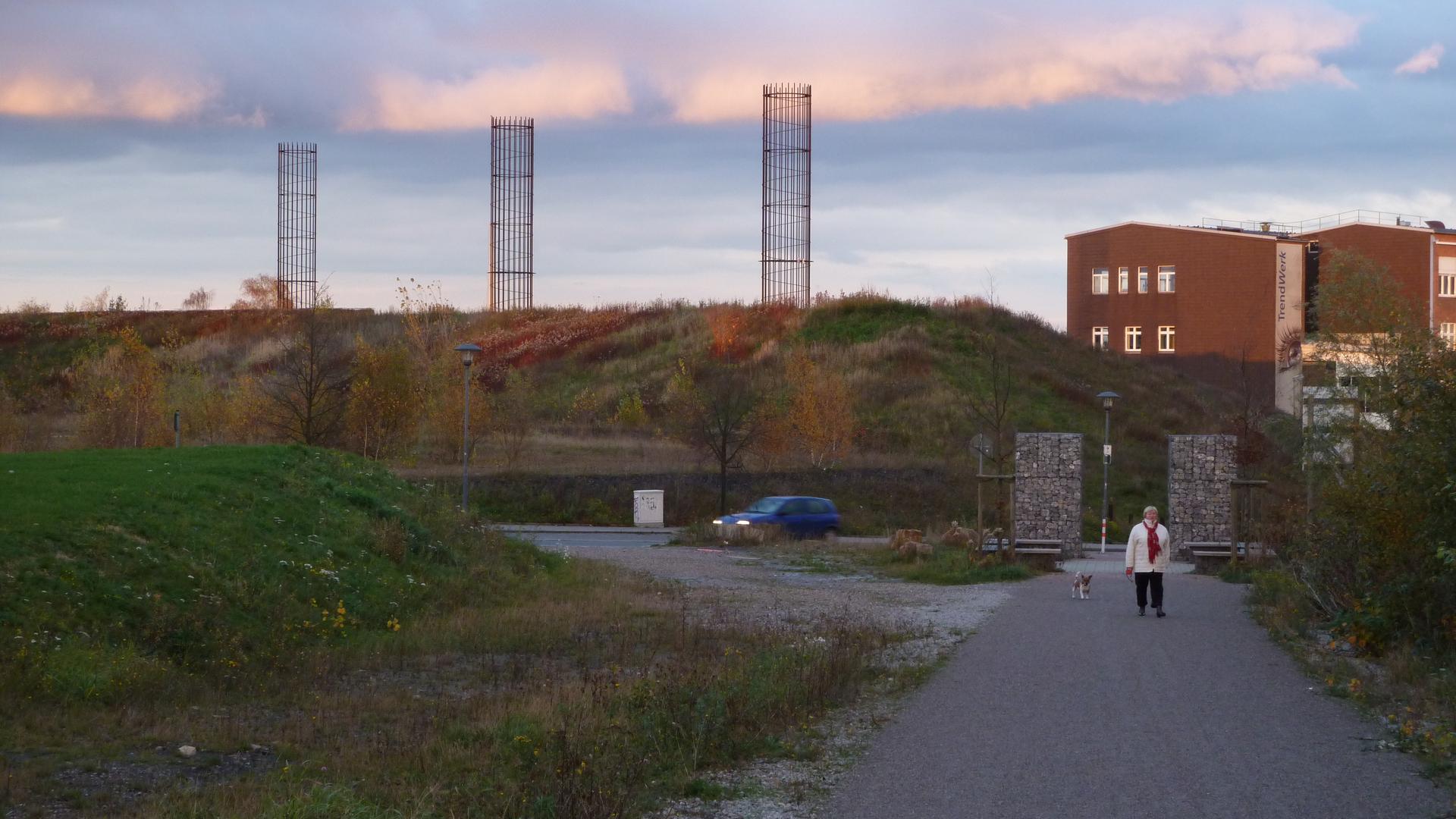 Vom Fuß der „drei großen Herren“ hat man einen guten Blick auf das Gesamtbild der Installation über(n)ort auf der Halde Lothringen.
