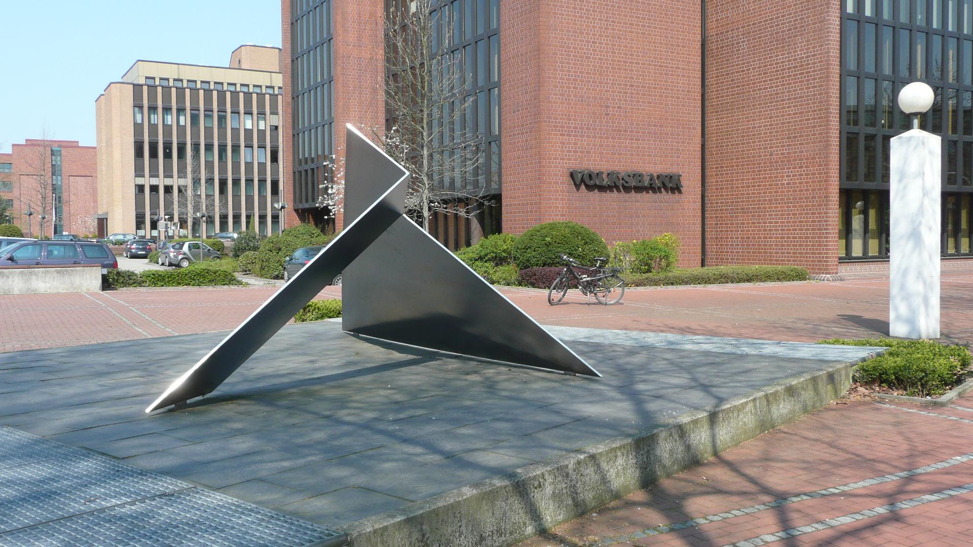 Die Stahlskulptur aus Nirosta, gestiftet von der Volksbank und ThyssenKrupp ist die einzige bekannte Skulptur im öffentlichen Raum