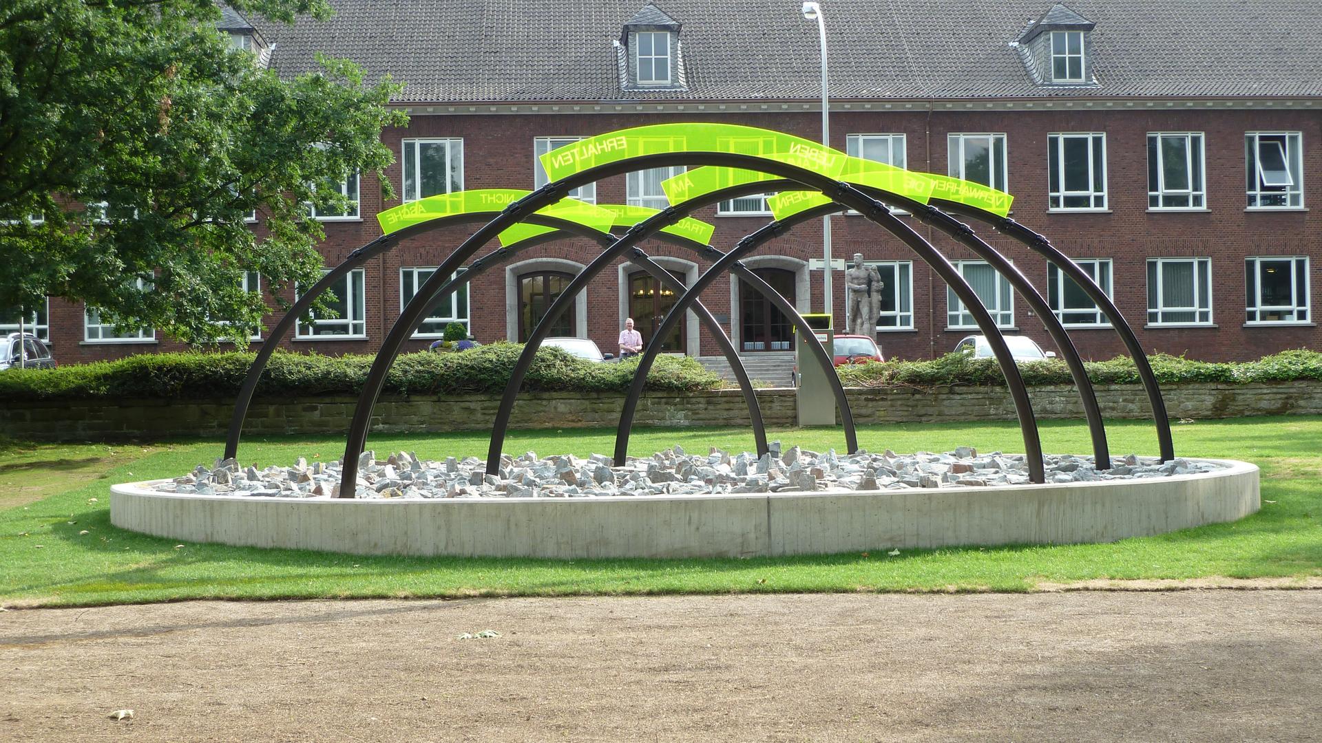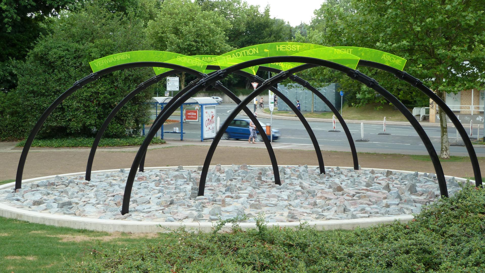 Die erleuchteten Wörter auf den Bögen ergeben zusammen den Text