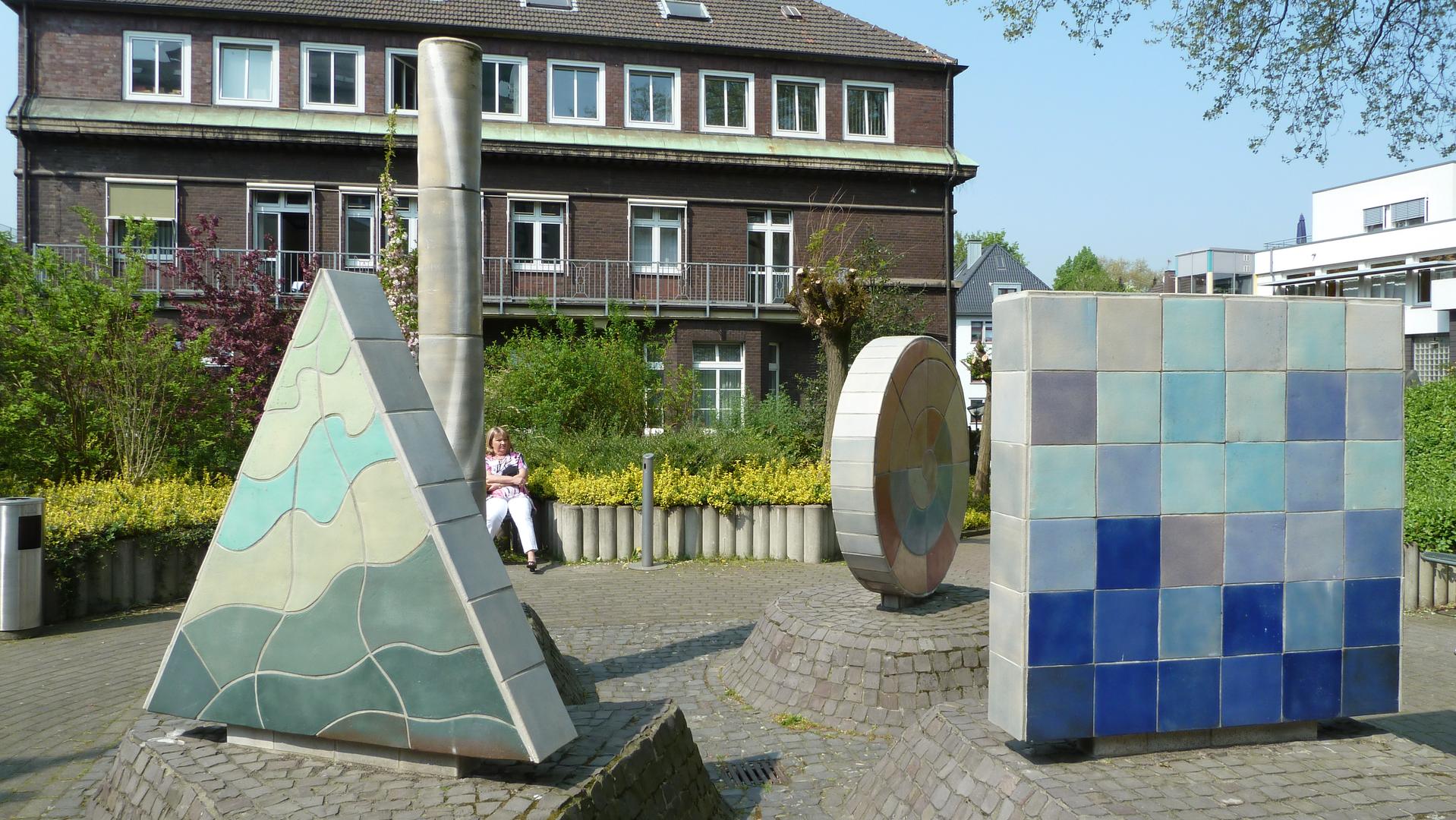 Der Platz der Elemente im Bereich des Haupteingangs entstand 2004. Drei Keramikobjekte in den geometrischen Grundformen Kreis, Dreieck, Quadrat und eine Säule bilden die Elemente. Die harmonischen Farben und Linien der Keramik erinnern zugleich an elementare Formen und Farben der Natur.
