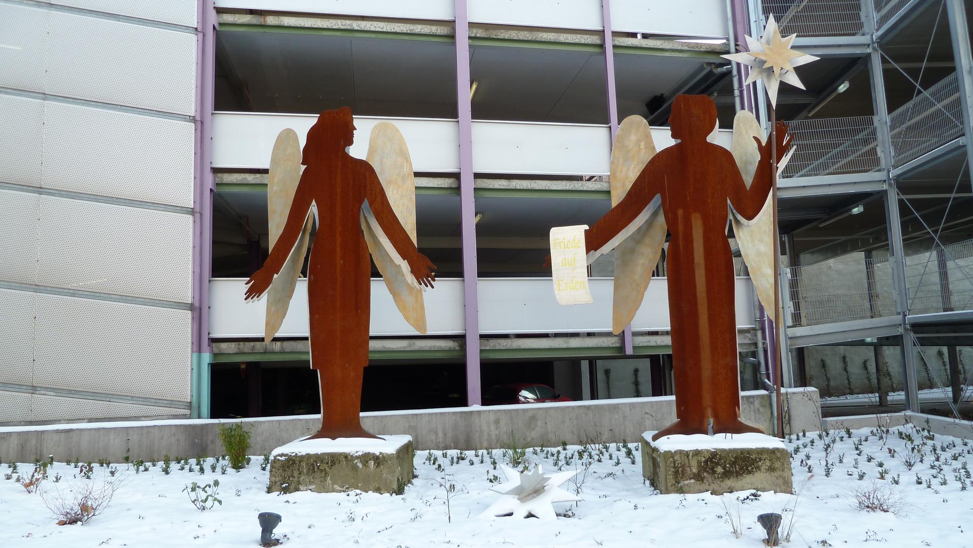 Jochen Schimpfle-Andresen schuf für die Weihnachtsaktion des Wirtschaftsverbands außerdem eine drei Meter hohe Engelsgestalt aus Stahl.