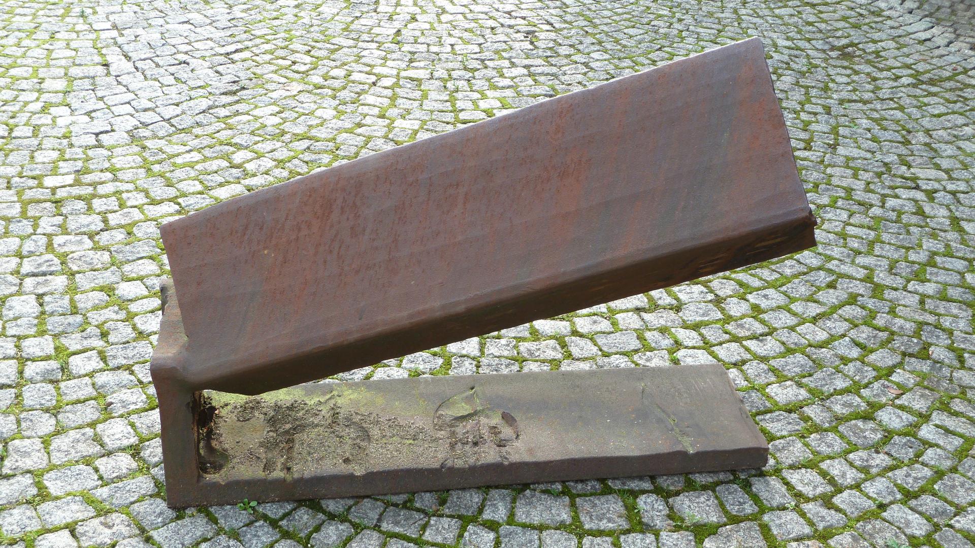Das beinahe vollständig abgetrennte Eisen verharrt in beinahe schwebender Position. Das Schwere wird durch das Leichte in dieser Position gehalten. Dadurch bekommt das scheinbar unnachgiebige Material eine verstörende Einfachheit und Leichtigkeit.