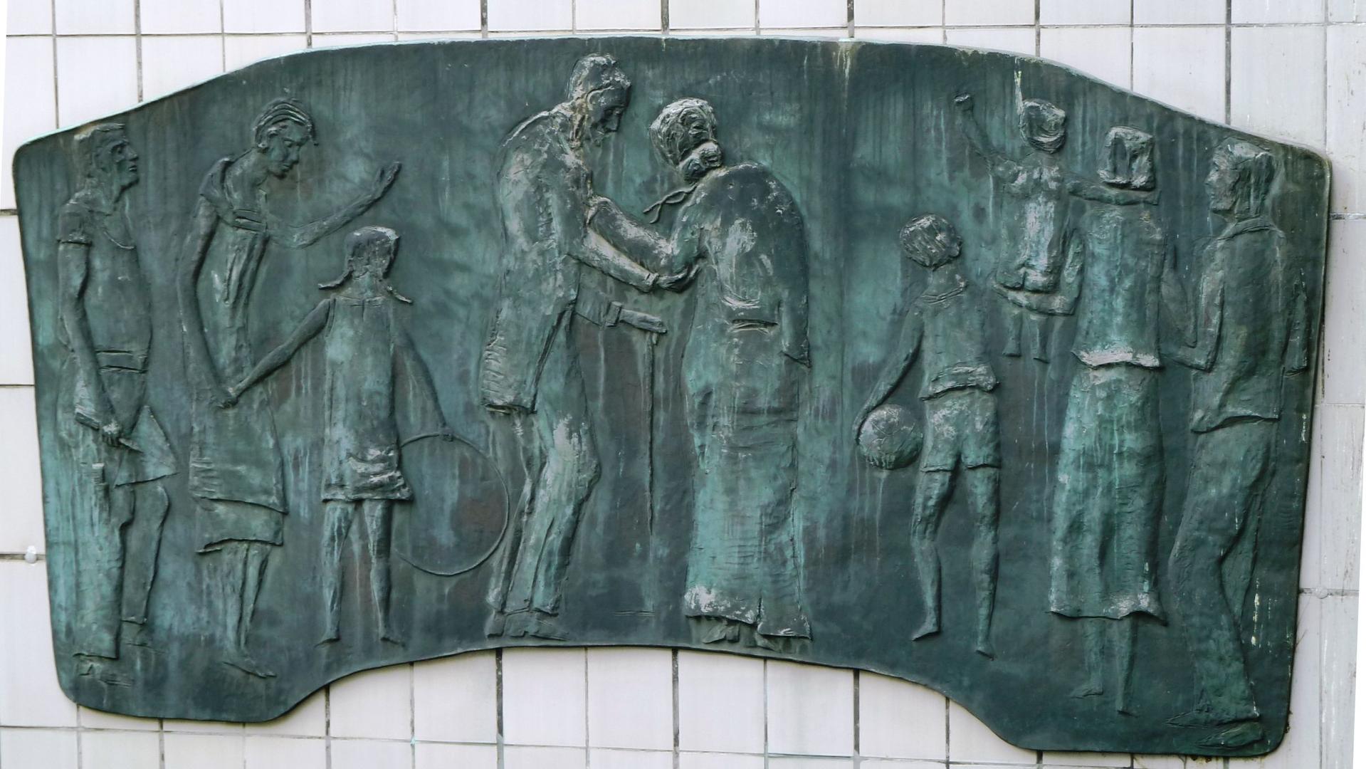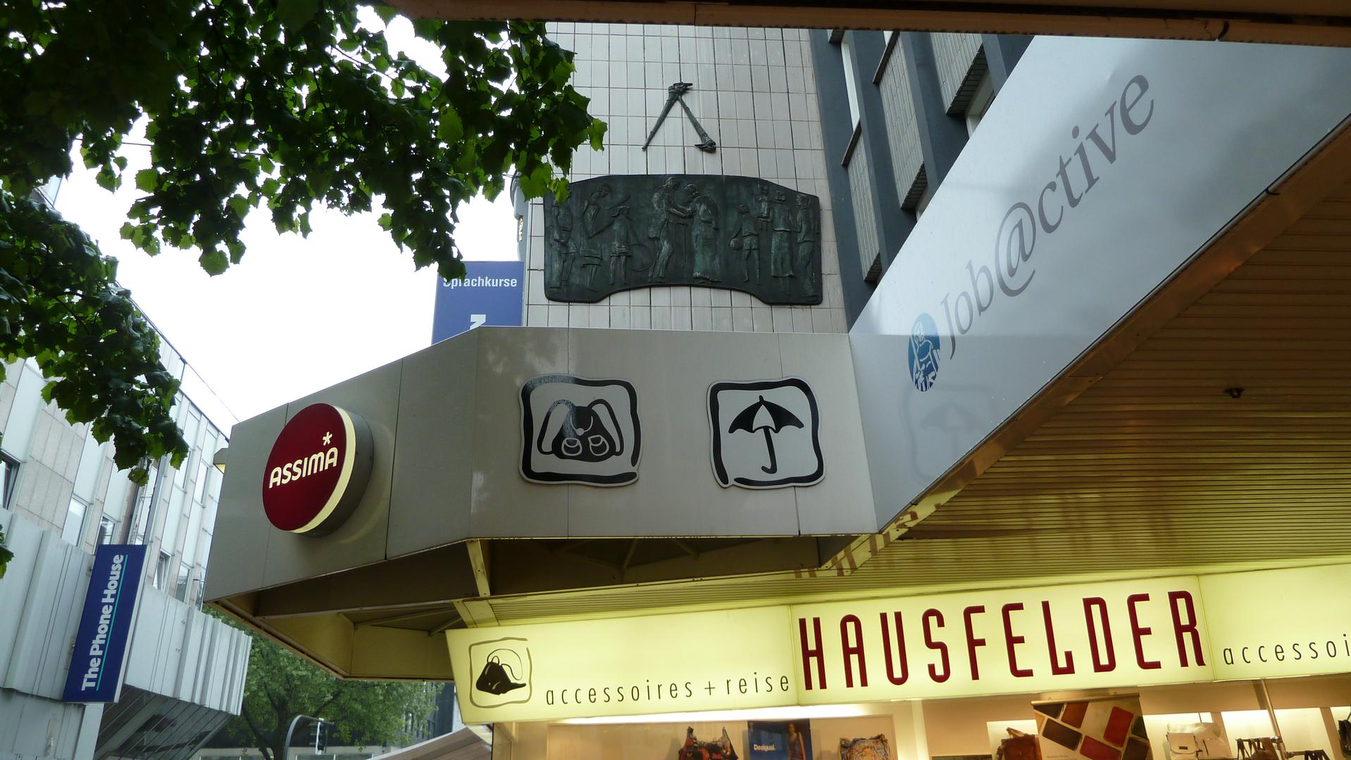 Das etwas versteckte Relief am Geschäftshaus Kortumstraße 47 ist klassische Kunst am Bau. Unbetitelt und ohne Beschriftung steht es doch in engstem Zusammenhang mit dem Geschäftszweck. Heute lässt sich diese Beziehung nicht mehr ohne Weiteres entschlüsseln, aber 1958, zur Entstehungszeit des Gebäudes, war der Zusammenhang zumindest den Kunden der Gothaer Lebensversicherung sonnenklar.