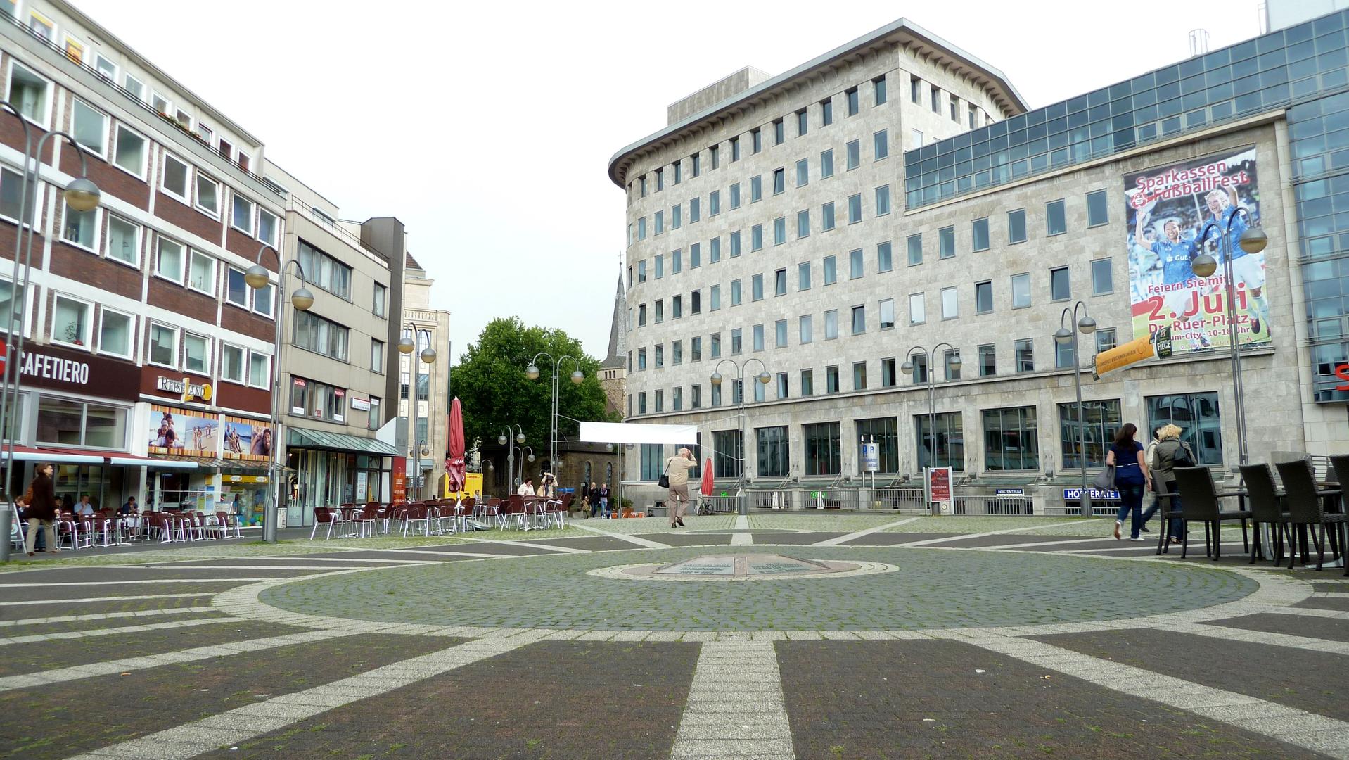 In unmittelbarer Nachbarschaft zum Dr.-Ruer-Platz befand sich die Bochumer Synagoge, bis sie in der Pogromnacht 1938 zerstört wurde.